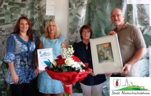 Bürgermeisterin Tanja Grether sowie der Personalratsvorsitzende Herr Herbert Hauck bedankten sich im Namen der Stadt Neckarbischofsheim für den langjährigen Einsatz und den treuen Dienst beider Jubilare. Beide Geehrten erhielten neben einem Blumenstrauß in den typischen Farben der Stadt, eine Dankurkunde sowie ein Gemälde der Stadt.