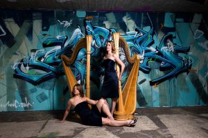 Die beiden Harfenistinnen lernten sich im Studium kennen und gründeten 2009 ihr Harfenduo Harparlando.