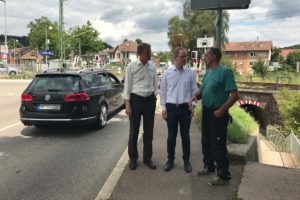 (zg) Der stellvertretende FDP-Landtags-fraktionsvorsitzende Jochen Haußmann und FDP-Bundestagskandidat Dr. Jens Brandenburg haben sich in Hoffenheim über die aktuelle Verkehrslage informiert. Begleitet wurden Sie vom Ortsvorsteher Karlheinz Hess und dem FDP-Ortsvorsitzenden Michael Westram.