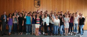 (zg) Mit vielen neuen Informationen, Namen und Gesichtern begann am 1. September 2016 im Großen Sitzungssaal des Landratsamts Rhein-Neckar-Kreis in Heidelberg für 33 neue Auszubildende beim Rhein-Neckar-Kreis der erste Schritt ins Berufsleben. Darunter befinden sich künftige Verwaltungsfachangestellte, künftige Bachelor (Public Management, Soziale Arbeit, Vermessung, Geomatik, Bauwesen), künftige Vermessungstechniker, Straßenwärter und Forstwirte. Erster Landesbeamter Joachim Bauer begrüßte die jungen Frauen und Männer in der Kreisbehörde in Heidelberg.