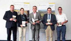 (Landratsamt Rhein-Neckar-Kreis) Bildunterzeile Foto 2: Die Macher der Integrationskonferenz im Rhein-Neckar-Kreis: (v.l.n.r.) Matthias Bönsel, Agentur Viventure, Anne Kathrin Wenk, Integrationsbeauftragte des Rhein-Neckar-Kreises, Landrat Stefan Dallinger, Ordnungsdezernent Christoph Schauder und Ordnungsamtsleiter Stefan Becker
