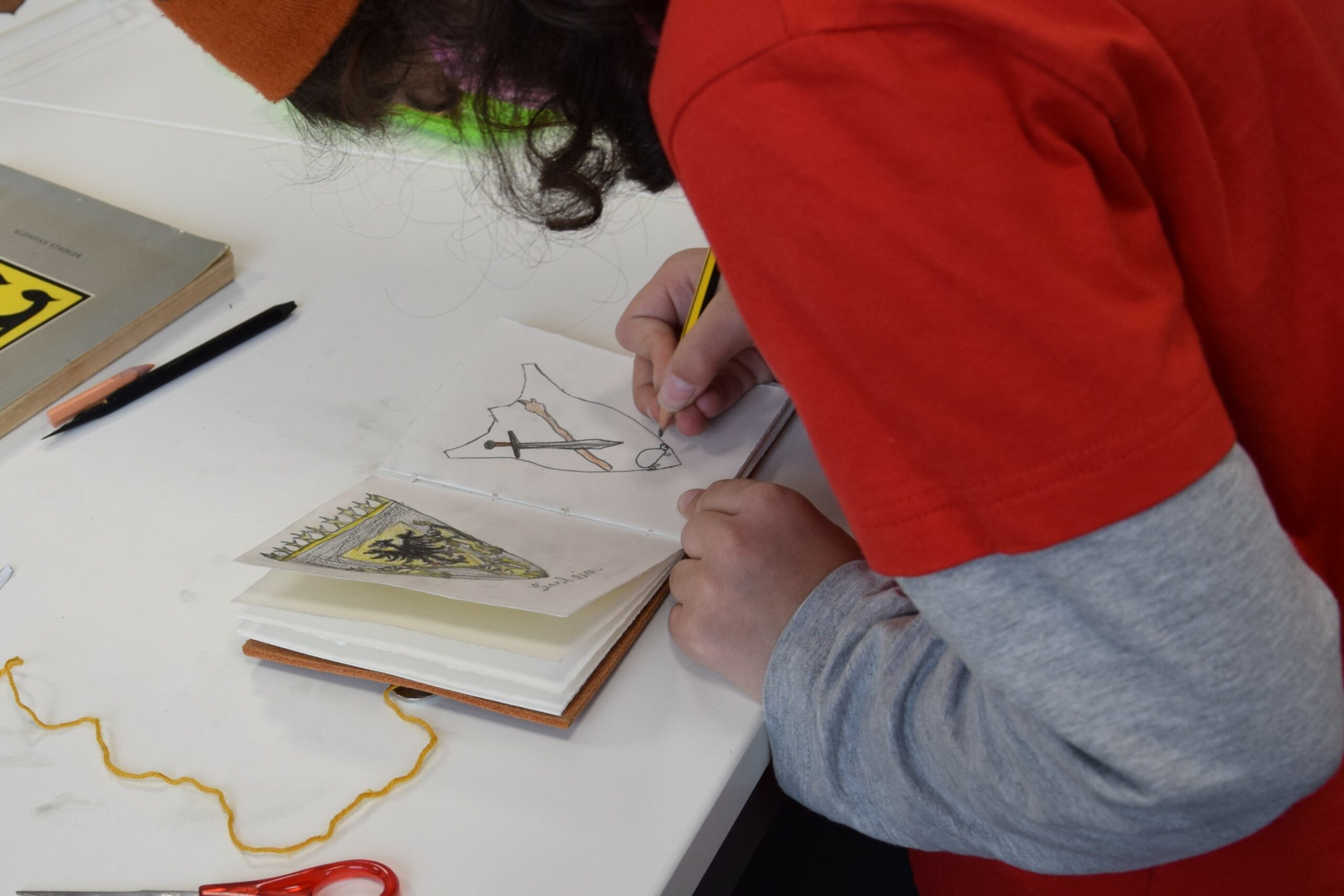 Bild (Stadtmuseum Sinsheim): Wappen wurden gestaltet und im Forschertagebuch verewigt