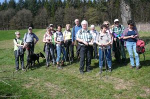 Nach dieser Besichtigung führte uns unser Weg auf dem ehemaligen Treidelpfad entlang des Neckars, bevor es auf der Route der Steinbrüche stetig bergauf ging. Durch die Moosklinge wanderte die Gruppe bis hinauf auf die Hochebene von Moosbrunn. Belohnt wurden wir mit herrlichen Panoramablicken zum Katzenbuckel und bis zum Stuttgarter Fernsehturm. Einmalig! Nach der Mittagsrast folgten wir weiter unserem Weg, vorbei an einer ehemaligen Baumschule, bevor wir an der Bildhütte unseren Blick ins Neckartal bis zur Feste Dilsberg und zum Königstuhl schweifen lassen konnten. Wo es hinauf geht, geht es bekanntlich auch bergab. Die Hirschhorner Steige bot uns von nun an wunderbare Ausblicke auf den Neckar und die Stadt Hirschhorn, bis wir unseren Ausgangspunkt, die Ersheimer Kapelle, wieder erreicht hatten.