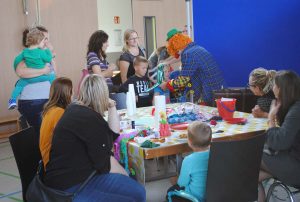 (zg) Man nehme eine Farbmalmaschine, zwei Hochsprungmatten, ein Bällchenbad, drei für die Zielgruppe passende Beratungsstände, ein Geschichtenzelt, mehrere hochmotivierte pädagogische Fachkräfte und ein leckeres Catering. Fertig ist ein entspannter Familiennachmittag, der über 100 Menschen bei bestem Wetter in die Halle der Carl-Orff-Schule lockte.