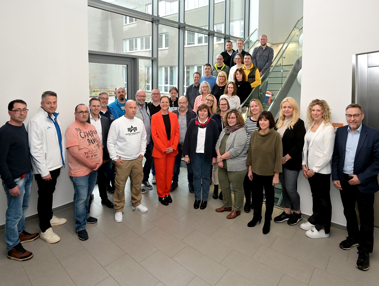 25 Jahre Betriebszugehörigkeit feiern: Rainer Auer, Bianka Bartik-Kubitz, Cornelia Bau-meister, Anja Beck, Michael Bickel, Dagmar Brenner, Dirk Heß, Sigrid Hess, Melanie Hufler, Carmen Istenes, Carmen Köhler, Thomas König, Alexander Merkel, Silvia Petri, Michael Pojda, Karin Pries, Jürgen Schmidt und Bernd Schrempp.