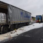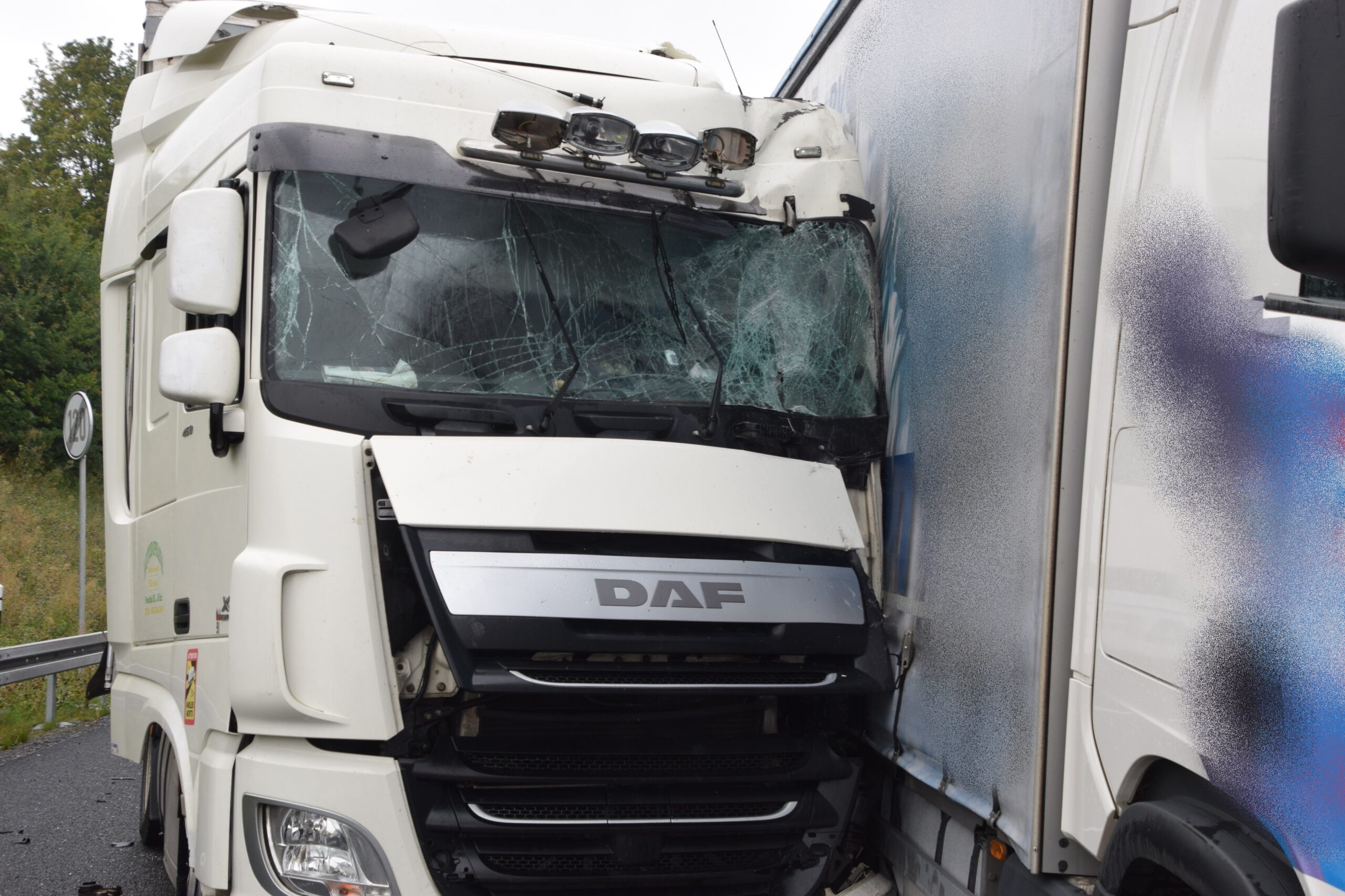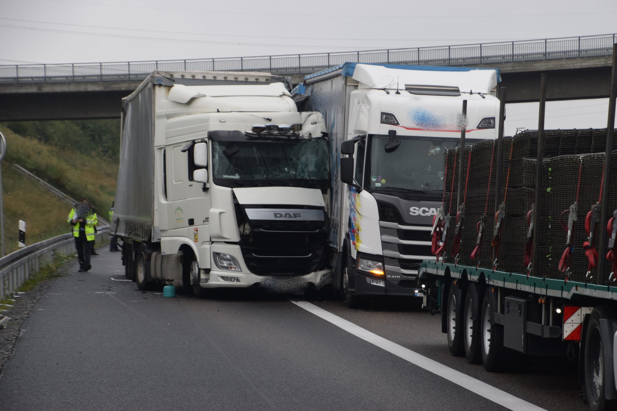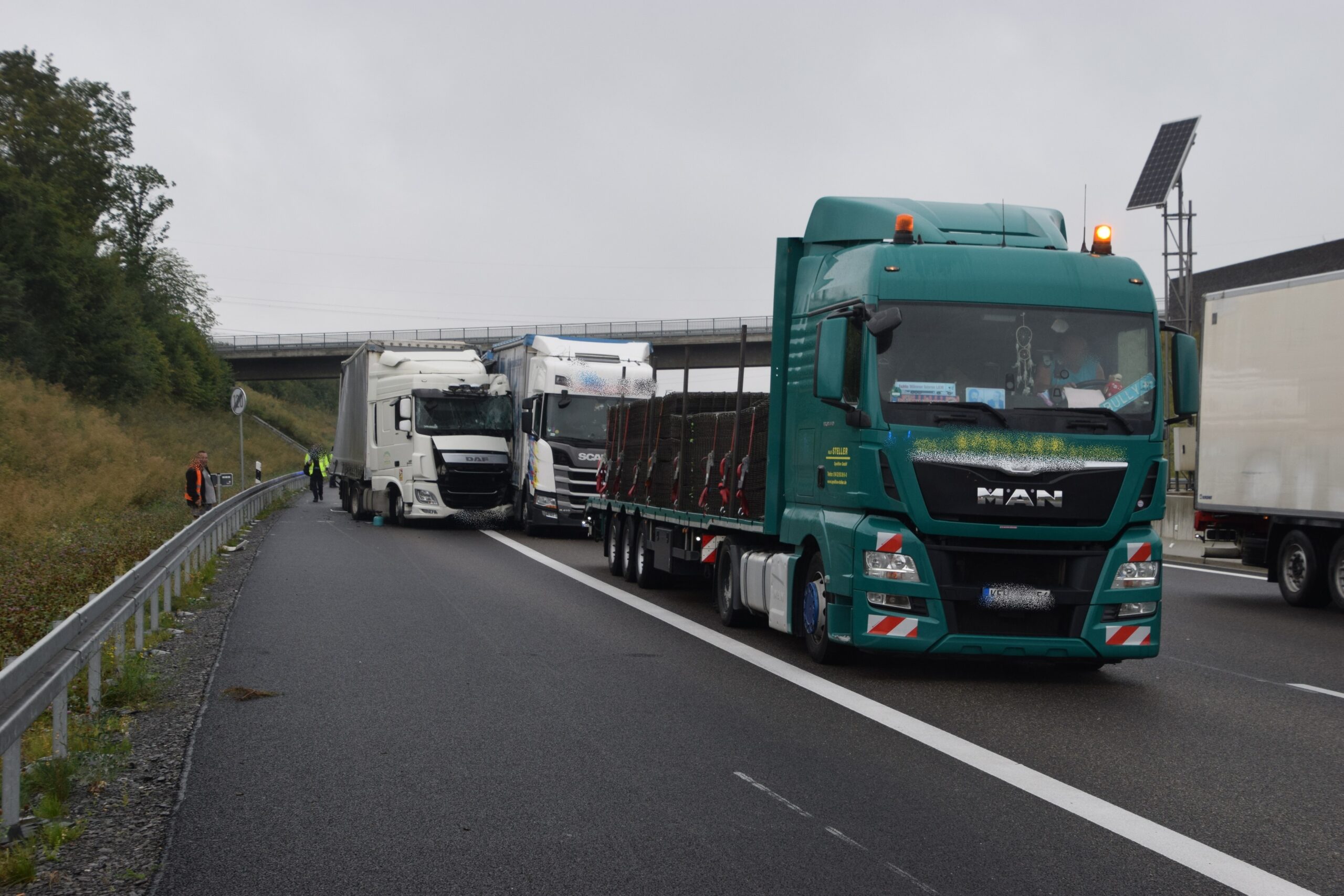 Gegen 09.20 Uhr war es zu einer Kollision mit drei beteiligten Lastwagen auf der rechten Spur gekommen. Ein LKW riss bei der Kollision auf und es verteilte sich Gelatine auf der Fahrbahn. Über den Unfallhergang liegen bislang keine gesicherten Angaben vor.