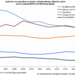 Im Jahr 2016 wurden in Baden‑Württemberg rund 102 600 Personen vor Gericht schuldig gesprochen. Gegenüber 2015 wurden 12 Personen mehr verurteilt. Damit lag die Zahl der gerichtlich Verurteilten 2016 faktisch auf dem Niveau des Vorjahres. Gleichwohl zeigt das Ergebnis, dass sich der seit dem Jahr 2007 zu beobachtende Rückgang der Verurteiltenzahl nicht weiter fortgesetzt hat. Ursächlich hierfür ist der Anstieg der verurteilten Erwachsenen im Alter von mindestens 21 Jahren um 550 Personen bzw. 0,6 % auf 89 500 Personen. In der Gruppe der Heranwachsenden im Alter von 18 bis unter 21 Jahren und der Jugendlichen im Alter von 14 bis unter 18 Jahren setzten sich die seit 2007 zu beobachtenden rückläufigen Trends bei der Verurteiltenzahl bis in das Jahr 2016 weiter fort. So ging die Zahl der Schuldsprüche gegenüber dem Vorjahr bei den Heranwachsenden um 3,2 % bzw. 300 Personen auf 9 000 Verurteilte zurück. In der Gruppe der Jugendlichen war der Rückgang der Verurteiltenzahl um 5,5 % oder 240 Personen auf nunmehr 4 100 deutlich stärker. Dies sagte die Präsidentin des Statistischen Landesamtes, Dr. Carmina Brenner, heute auf einer Pressekonferenz mit dem Minister der Justiz und für Europa, Guido Wolf, bei der Präsentation der aktuellen Ergebnisse der Strafverfolgungsstatistik.