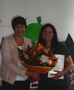 (zg) Zu den letzten Amtshandlungen der scheidenden Pfarrerin Christiane Glöckner-Lang zählte die Ehrung der Kita-Leiterin Silke Arnold. Frau Glöckner-Lang übergab ihr eine Urkunde für ihr 25-jähriges Dienstjubiläum. Frau Arnold absolvierte ihr Anerkennungsjahr in Lobbach und arbeitete dann vierzehn Jahre lang im Kindergarten in Eschelbronn, bevor sie 2007 als Leiterin in den evangelischen Kindergarten Neckarbischofsheim kam. Im Kreis der Kinder und Erzieherinnen dankte Frau Glöckner-Lang Frau Arnold für die hervorragende Arbeit im Kindergarten und überreichte ihr einen besonders großen und bunten Blumenstrauß.