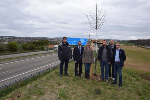 (zg) Im Rahmen des 25-jährigen Firmenjubiläums der Wolf GmbH International Spedition spendete das Unternehmen der Stadt Sinsheim im letzten Jahr 25 Bäume. Für jedes Firmenjahr einen Baum. Bereits letzten November wurden in der Roßberg-Allee in Waldangelloch 10 Obstbäume gepflanzt. Die restlichen Bäume wurden nun auf dem Blendschutzwall im Industriegebiet „Hinter der Mühle“ im Bereich der neuen Logistikhalle der Firma Zimmermann eingesetzt. Da dieser Standort andere Anforderungen an die Baumauswahl stellt, wurden hier keine Obstbäume, sondern Ahorn und Ulmen gepflanzt. Oberbürgermeister Jörg Albrecht dankte der Spedition für das Geschenk und den positiven Beitrag für Umwelt und Natur.