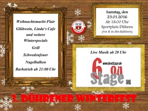 Nach dem großen Ansturm im letzten Jahr möchten wir auch 2016 mit euch das 3. Dührener Winterfest (Après-Ski-Party) auf dem Sportgelände des TSV Dühren feiern.