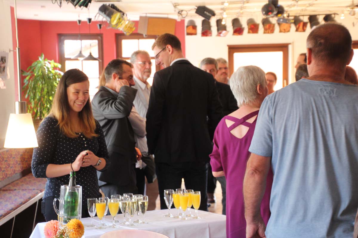 Mit einem kleinen Sektempfang wurde das Jubiläum gefeiert. OB Jörg Albrecht bedankte sich für die tolle Zusammenarbeit über die Jahre, denn das Tenzcentrum Sinsheim engagiert sich in der Seniorenarbeit aber auch in der Suchtprävention. Die Veranstaltung Tanzrausch statt Vollrausch auf dem Fohlenmarkt Sinsheim wird von Jahr zu Jahr beliebter. Mit peppigen Tanzauftritten der Kinder und Jugend wurde der Morgen im Tanzcentrum gebührend gefeiert.