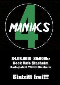 24. März 2018 ab 20.00 Uhr im Rock Café Sinsheim, Karlsplatz 8