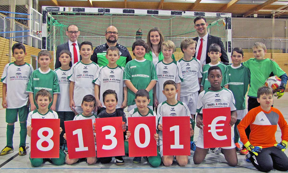 In Bruchsal nahm jetzt der SV 1962 die Gesamtspende des Weltspartags symbolisch für alle anderen Vereine entgegen. „Der Weltspartag bei der Sparkasse Kraichgau war eine tolle Aktion“, sagte SV-Jugendleiterin Judith Klett. „Wir konnten unseren Verein vielen Sparkasse-Besuchern vorstellen und bekamen obendrein noch eine Spende von 1.985,42 Euro für unsere Nachwuchsarbeit.“ Und die werde beim SV mit gut 200 Kindern und Jugendlichen zwischen vier und 18 Jahren großgeschrieben, wie E-Jugend-Trainer Andreas Mattner betont.