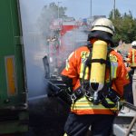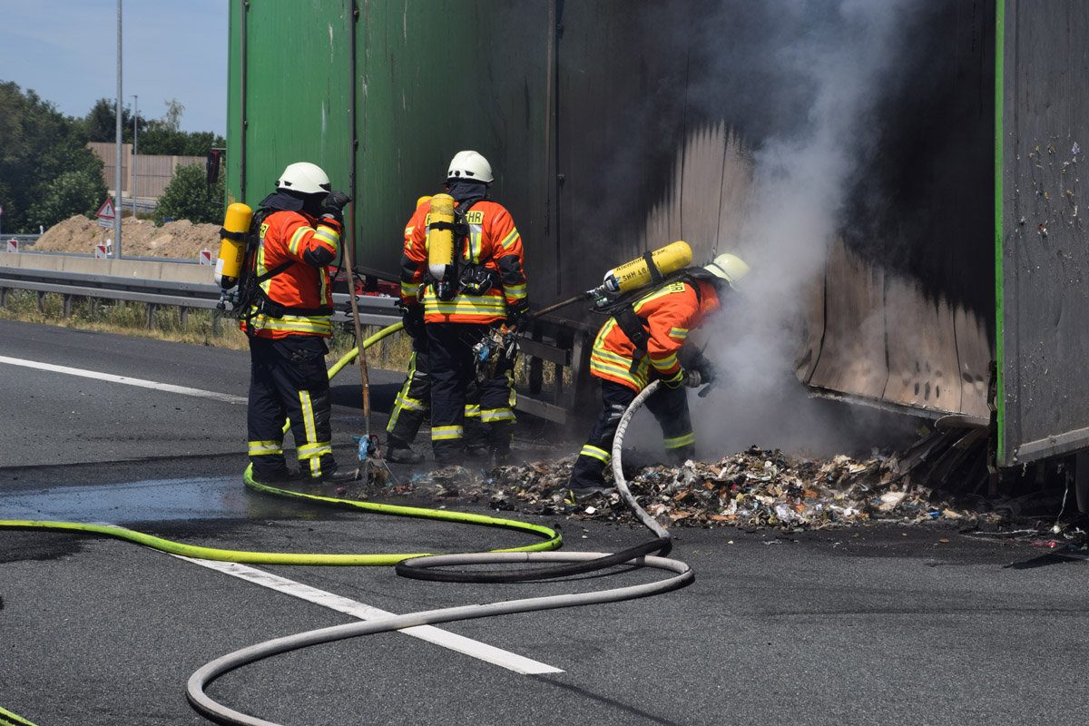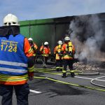 Bei Eintreffen der Streifenwagenbesatzung stand ein Anhänger eines Lkws auf dem Standstreifen in Vollbrand. Der Brandort liegt in Höhe der Raststätte Kraichgau Nord.