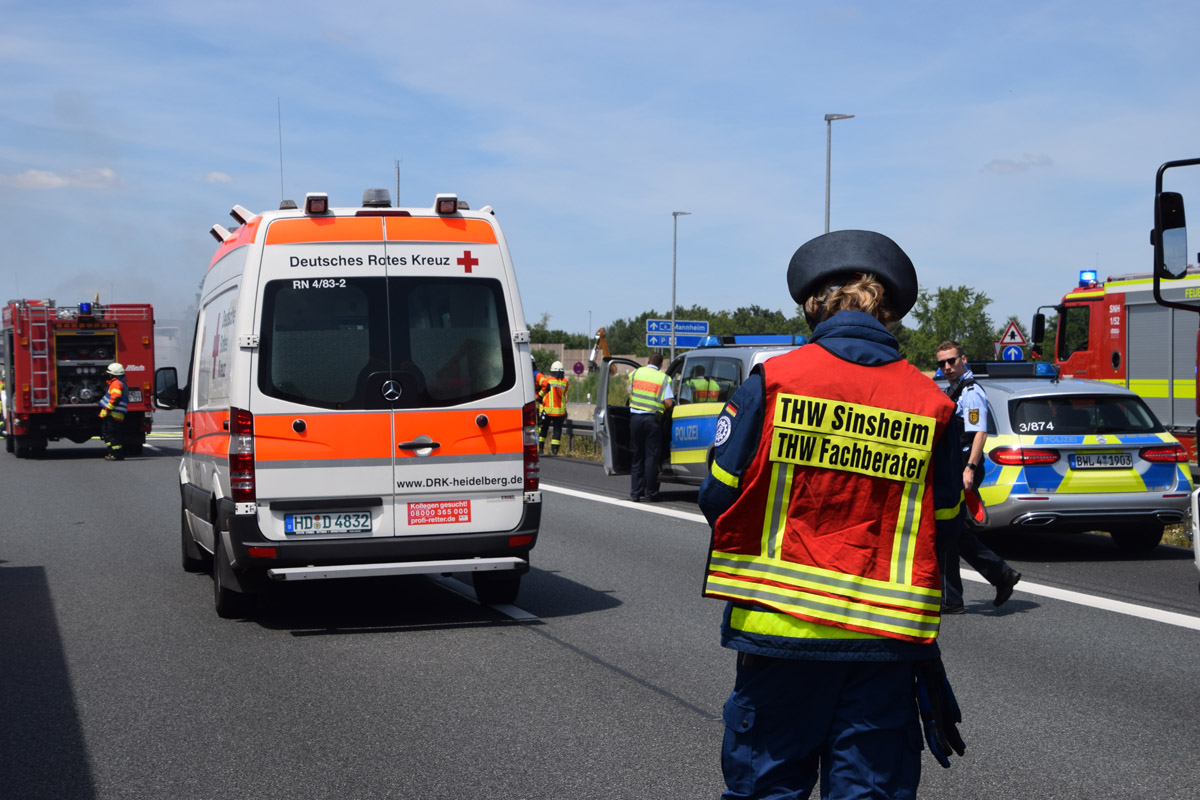 Eingetroffenen Feuerwehren übernahmen die Brandbekämpfung, hierzu wurde die Fahrbahn in Richtung Mannheim voll gesperrt. Die Sperrung und die Brandbekämpfung dauern derzeit an.