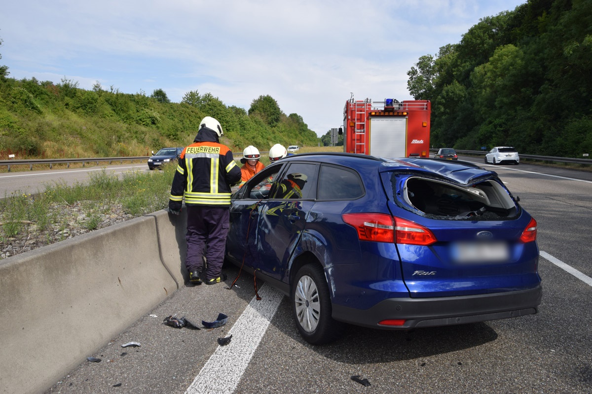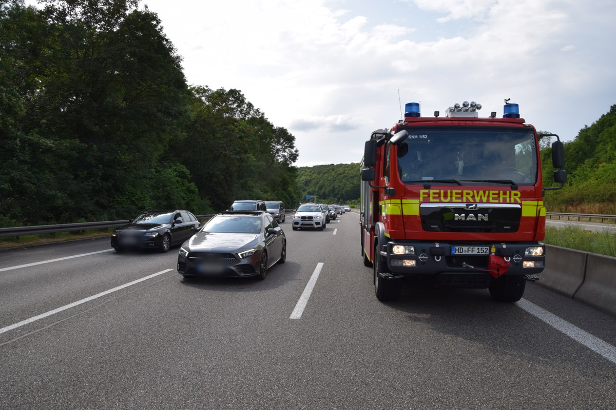 Steinsfurt. (red) Verletzt wurde ein Autofahrer aus Hessen bei einem Unfall am Sonntagnachmittag auf der Autobahn 6 bei Steinsfurt. Der Mann hatte mit seinem Ford Focus die Autobahn von Sinsheim nach Bad Rappenau, in Fahrtrichtung Heilbronn befahren. Aufgrund eines technischen Defekts ging sein Wagen während der Fahrt aus, teilte ein Polizeisprecher auf Nachfrage mit. Ein hinter ihm fahrender Peugeot-Fahrer erkannte die Situation zu spät und touchierte den Ford woraufhin dieser noch auf einen vor ihm fahrenden Kia Stonic geschoben wurde. Der Ford schleuderte mit dem Dach gegen die Betongleitwand ehe er wieder demoliert auf den Rädern zum Stillstand kam. Nach Auskunft des Notarztes wurde der Mann hinterm Steuer schwer verletzt und musste im Sinsheimer Krankenhaus stationär aufgenommen werden. Die übrigen Unfallbeteiligten blieben unverletzt. Während der Unfallaufnahme musste die Autobahn kurzzeitig voll gesperrt werden. Anschließend konnte der Verkehr über den mittleren Fahrstreifen an der Unfallstelle vorbeifließen. Schnell bildete sich hier der Unfallstelle ein Stau von rund fünf Kilometern Länge. Die Feuerwehr Sinsheim war an die Einsatzstelle geeilt, sicherte die Unfallstelle ab und klemmte die Fahrzeugbatterien der verunfallten Autos ab. Das Autobahnpolizeirevier Weinsberg hat die Ermittlungen aufgenommen. Über die Höhe des entstandenen Sachschadens konnte die Polizei zunächst keine Angaben machen.