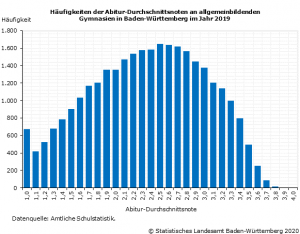 Am 18. Mai 2020 beginnen an den allgemeinbildenden Gymnasien die Abiturprüfungen. Knapp 29 500 Schülerinnen und Schüler der Jahrgangsstufe 2 werden in den schriftlichen Prüfungsfragen in Deutsch, Mathematik, einer Fremdsprache und einem weiteren Kernfach ihr Wissen zeigen. Im vergangenen Jahr 2019 legten gut 31 200 Schülerinnen und Schüler die Abiturprüfung an allgemeinbildenden Gymnasien in Baden-Württemberg ab. Dies waren nach Angaben des Statistischen Landesamts rund 1400 (−4,3 %) weniger als bei den vorangegangenen Abiturprüfungen 2018. Von allen Prüflingen bestanden 97,8 %, wohingegen 2,2 % die Mindestanforderungen nicht erreichten.