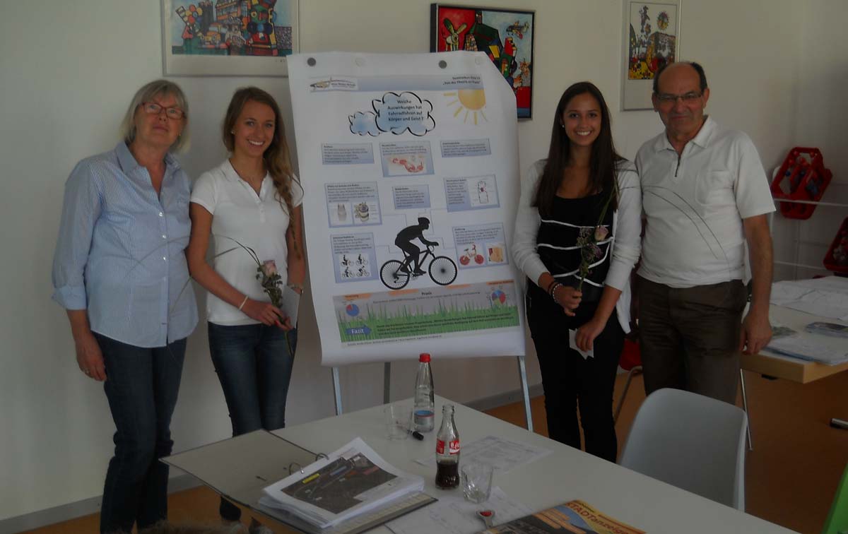 (zg) Die Projektgruppe „Radwegenetz“ der Lokalen Agenda 21 in Sinsheim traf sich in der vergangenen Woche zu einer Besprechung im Sinsheimer Rathaus. Annika Kühner und Anne Engelhardt, Schülerinnen der Max Weber Schule präsentierten nochmals ihre Seminarkurs-Arbeit zum Thema Radfahren anhand eines Plakats (siehe Foto). Auf Anregung ihres Lehrers Karlheinz Schneckenberger und Jens-Jochen Roth, dem Leiter des Steinbeis-Innovationszentrums arbeiteten die beiden Schülerinnen bei einer Untersuchung der Radwegeverbindungen in der Innenstadt mit und führten eine Umfrage zum Thema Radfahren in Sinsheim durch. Projektsprecherin Ulla Becker bedankte sich für die gute Zusammenarbeit.