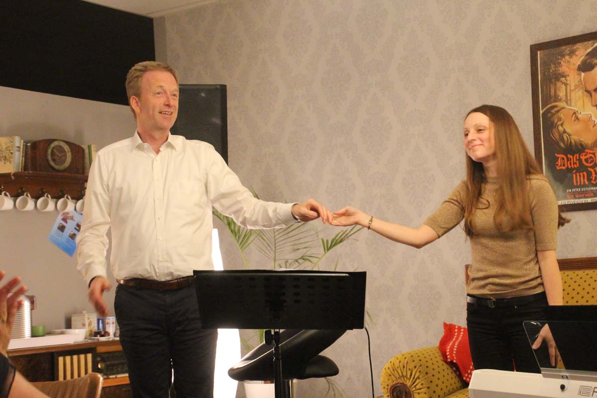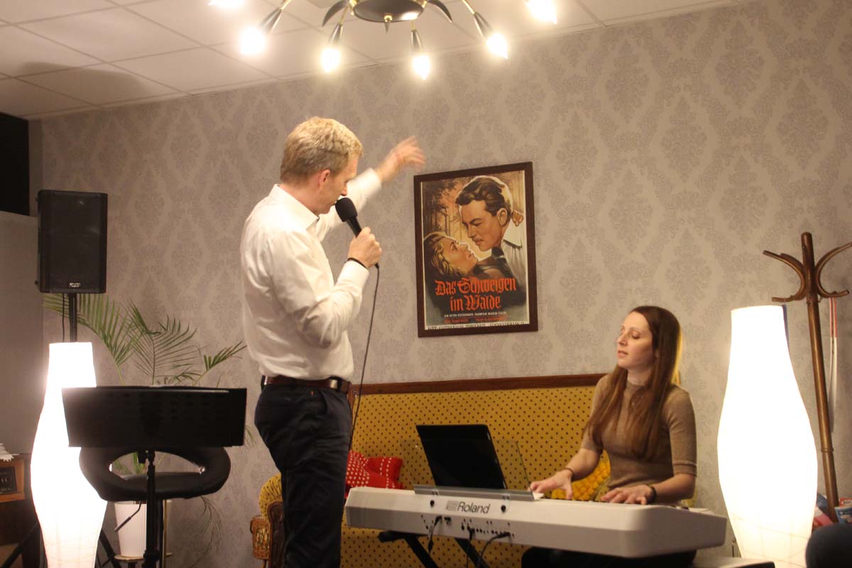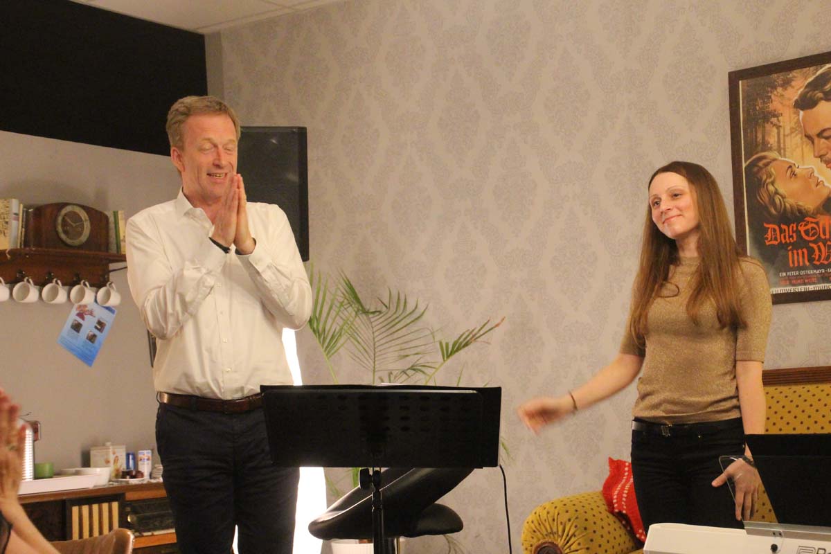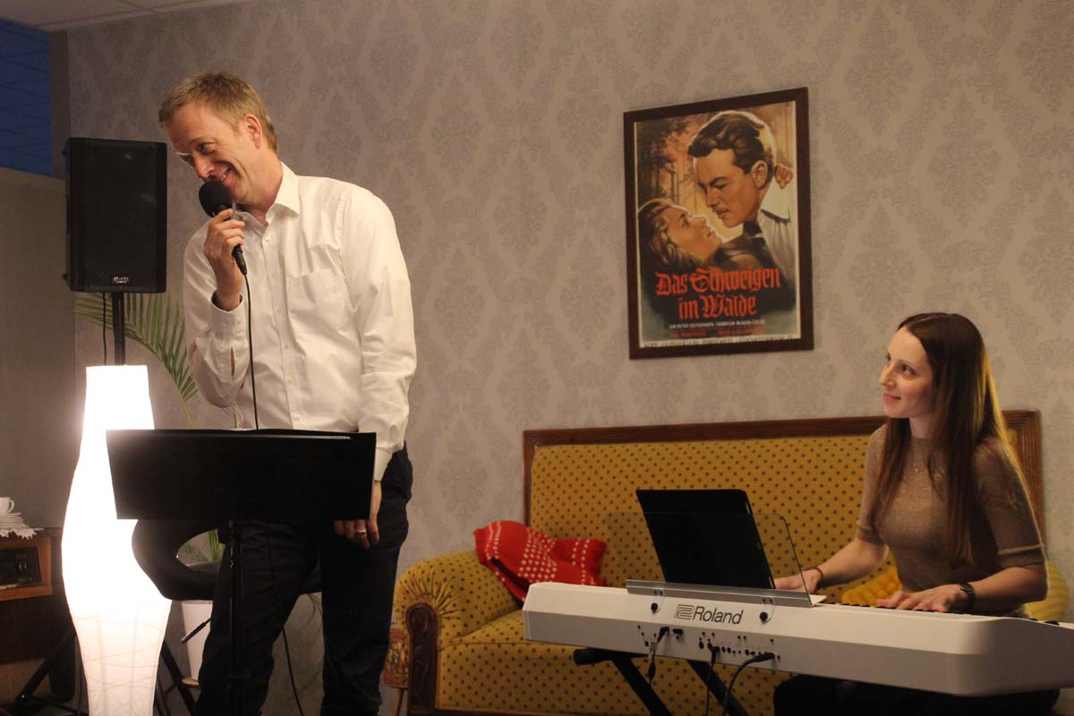(cr) Ulli Kimpel hat doch immer so ein wunderbares Händchen für so schöne Veranstaltungen in seinem Wohnzimmer im Therapiezentrum. „Liebe trifft den richtigen Ton“ – eine Veranstaltung zum dahinschmelzen. Martin Seidler und Kristina Stelter schafften eine so romantische Atmosphäre. Martin Seidler, hauptberuflich Moderator beim SWR, las Liebeserklärungen berühmter Persönlichkeiten. Das ganze wurde passend und einfühlsam begleitet von Kristina Stelter am Klavier. Worte und Töne vereinten sich in einer einzigartigen Symbiose. Das waren ganz grosse Emotionen die unter die Haut gingen. Ein Abend mit diesen zwei Künstlern lohnt sich, zuhören – Seele baumeln lassen und geniessen.