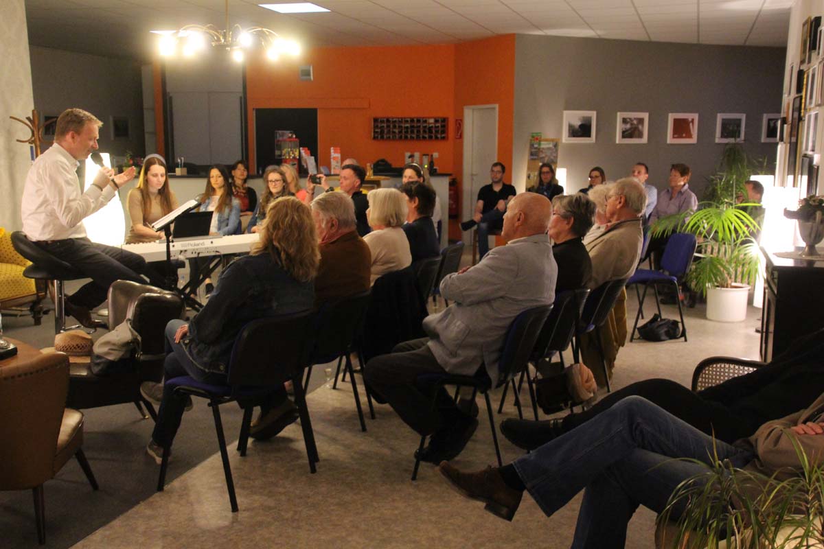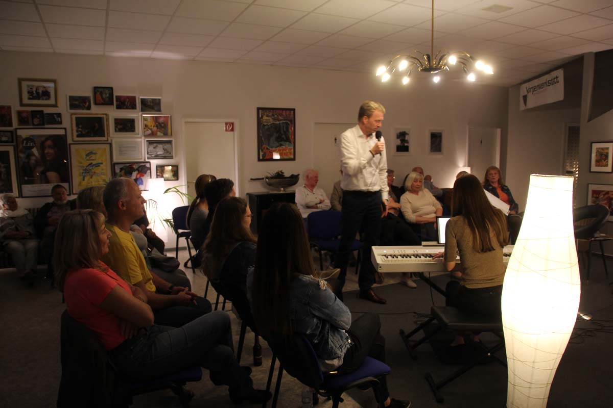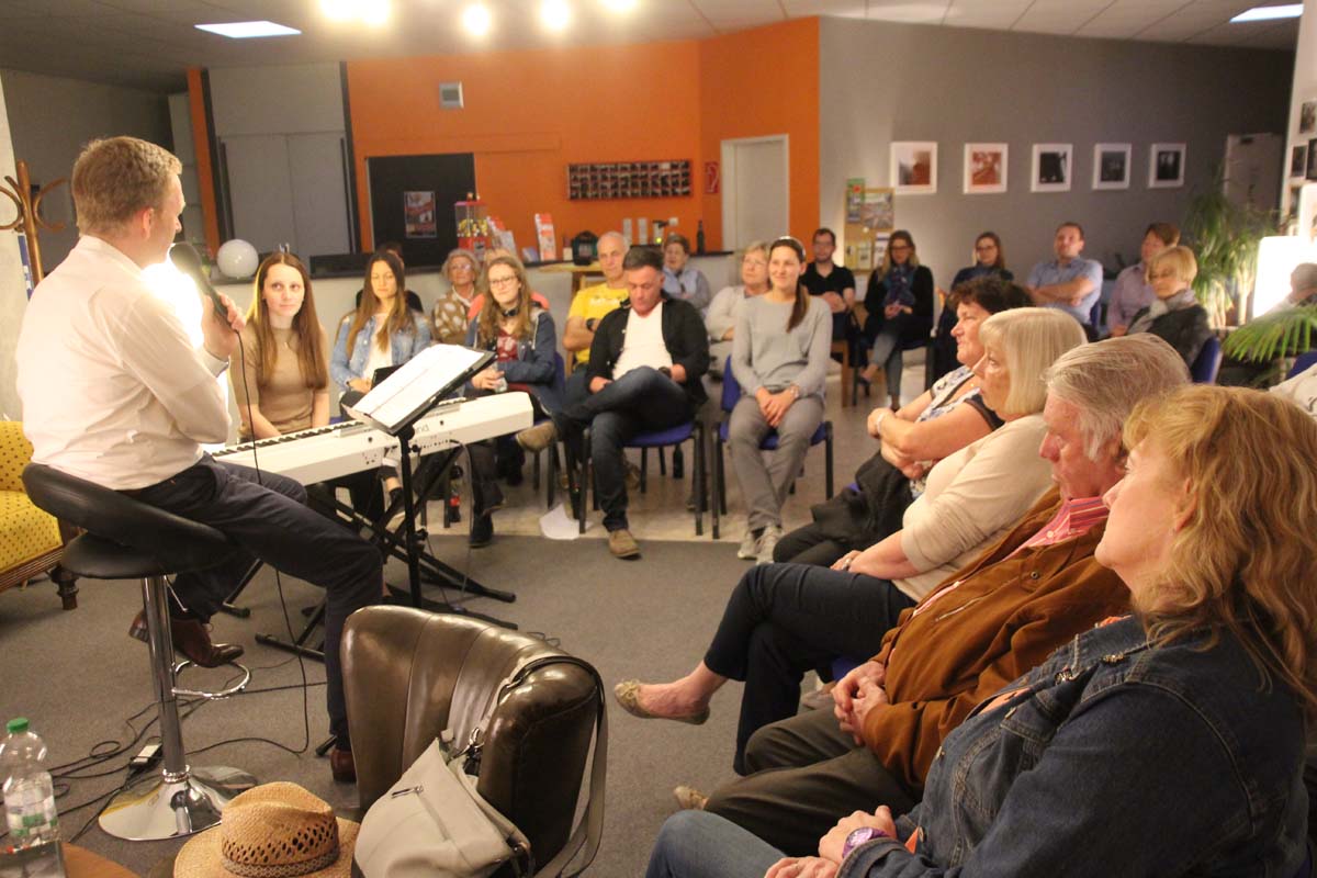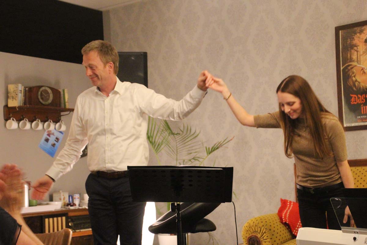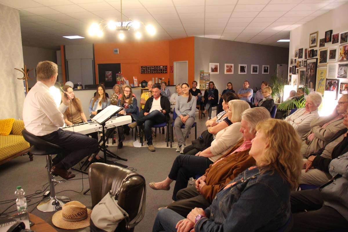 (cr) Ulli Kimpel hat doch immer so ein wunderbares Händchen für so schöne Veranstaltungen in seinem Wohnzimmer im Therapiezentrum. „Liebe trifft den richtigen Ton“ – eine Veranstaltung zum dahinschmelzen. Martin Seidler und Kristina Stelter schafften eine so romantische Atmosphäre. Martin Seidler, hauptberuflich Moderator beim SWR, las Liebeserklärungen berühmter Persönlichkeiten. Das ganze wurde passend und einfühlsam begleitet von Kristina Stelter am Klavier. Worte und Töne vereinten sich in einer einzigartigen Symbiose. Das waren ganz grosse Emotionen die unter die Haut gingen. Ein Abend mit diesen zwei Künstlern lohnt sich, zuhören – Seele baumeln lassen und geniessen.