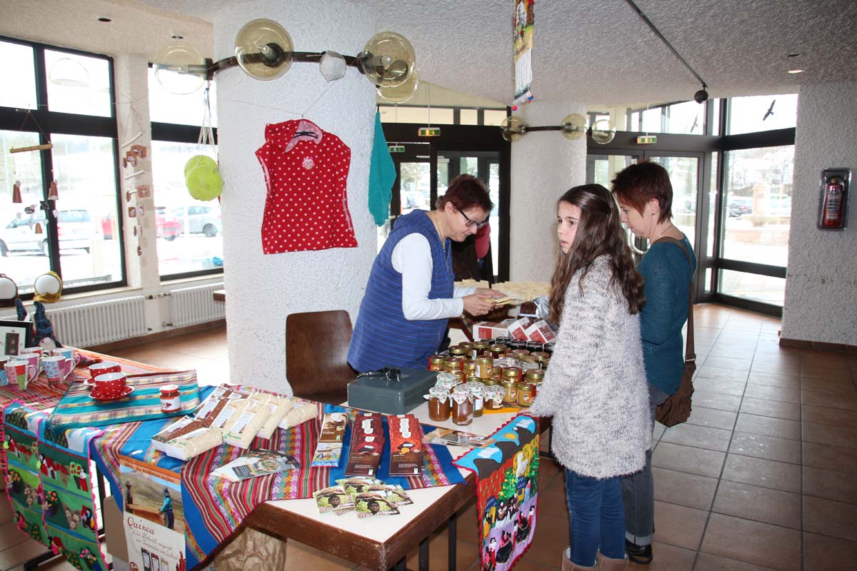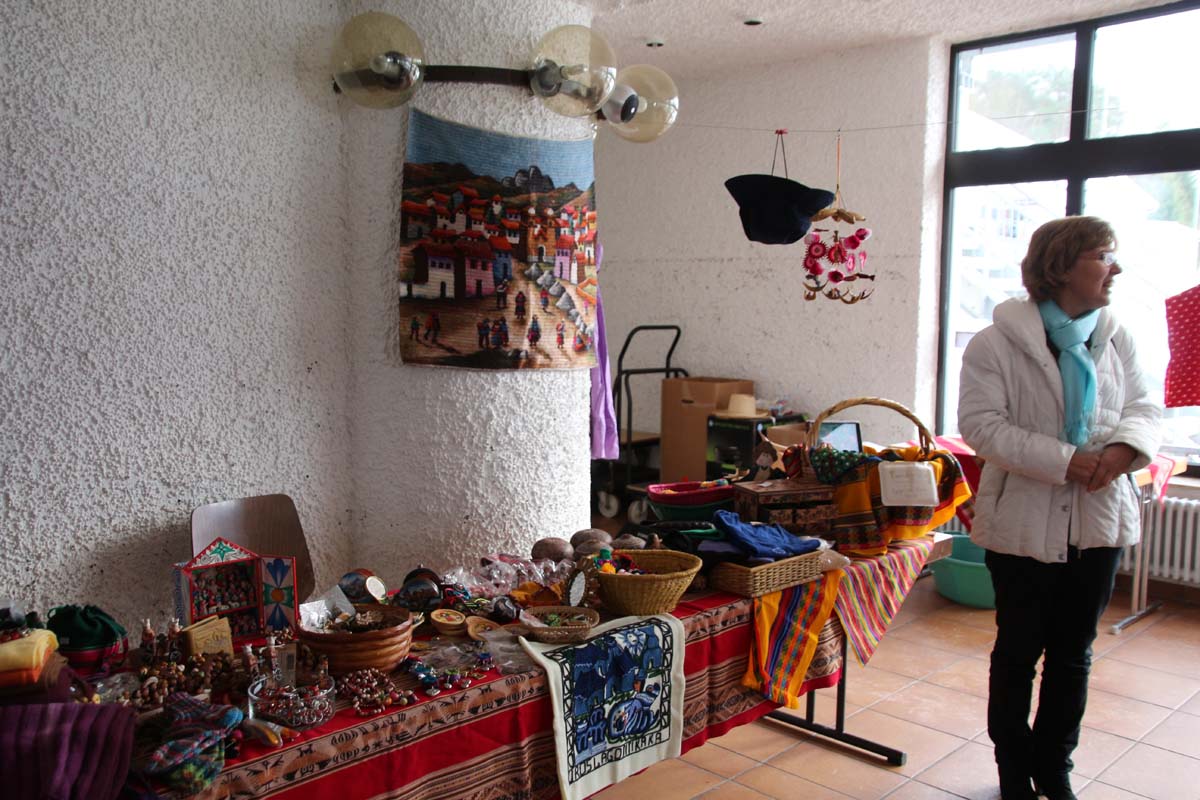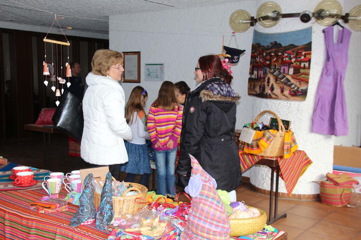 Im Foyer wurden Waren aus fairem Handel, kunsthandwerkliche Gegenstände und peruanische Strickwaren zum Verkauf angeboten.