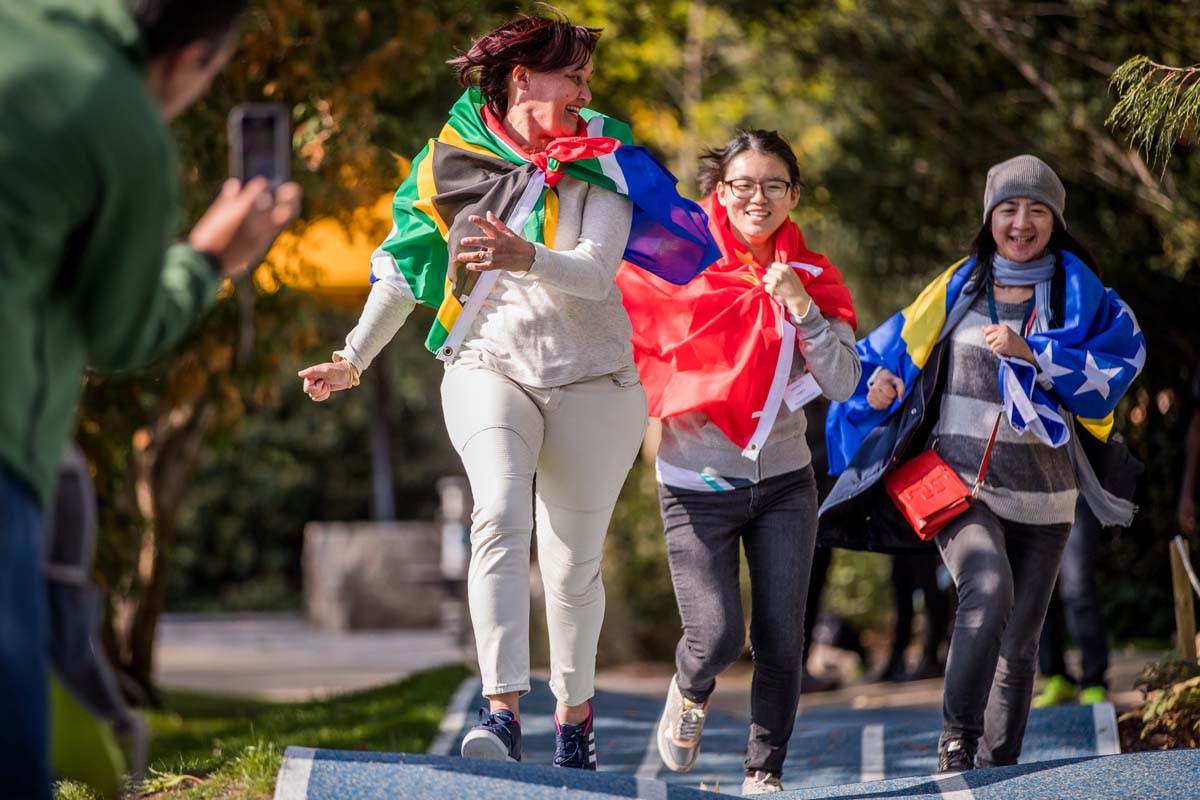 (zg) Auf dem Trampolinhügel liefern sich die Leiter des deutschen Projekts „Kicking Girls“ mit den indischen „Magic Bus“-Vertretern einen Wettbewerb um die höchsten Sprünge und auf der blauen Wellenbahn sprintet Laureus Sport for Good Südafrika gegen Laureus Sport for Good England um die Wette. 180 Vertreter sozialer Sportprojekte der Laureus-Stiftung aus 35 Ländern besuchten am gestrigen Mittwoch die alla hopp!-Anlage in Sinsheim. Die Bewegungseinheit nach dem Mittagessen war Teil des dreitägigen, in der Sinsheimer Wirsol Rhein-Neckar Arena stattfindenden Laureus Global Summits. Das Vernetzungstreffen der globalen Laureus-Projekte fand mit Unterstützung der Dietmar Hopp Stiftung statt. Mit der Einladung auf die alla hopp!-Anlage stellte die Stiftung den internationalen Gästen ihre bislang größte Förderaktion vor.