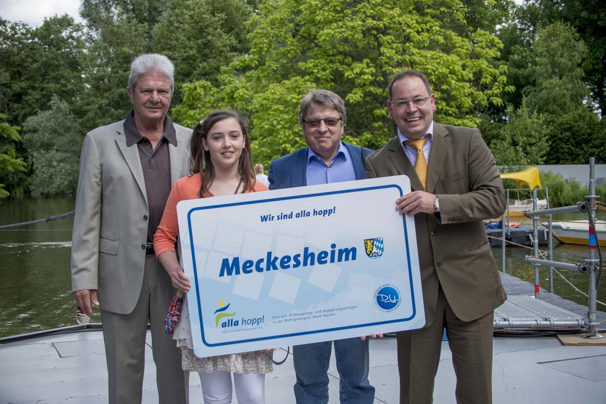 Insgesamt 127 Kommunen aus der Metropolregion hatten sich bei der Dietmar Hopp Stiftung beworben. Dass Meckesheim zu den 19 begünstigten Kommunen gehört, wurde am 05. Juni 2014 im Mannheimer Luisenpark bekannt gegeben. Die Pilotanlage in Schwetzingen wurde am 8. Mai 2015 eröffnet. Unmittelbar nach der Federbankübergabe beginnt die Planungsphase der alla hopp!-Anlage in Meckesheim. Mit dem Bau soll im Herbst 2016 begonnen werden. Die Fertigstellung und Eröffnung der Anlage ist im Sommer 2017 geplant.