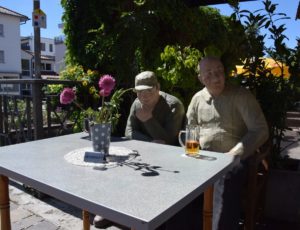 Bild (Stadt Sinsheim): Die beiden „Opas auf der Bank“ vor dem Gasthaus Linde sind den Sinsheimern ans Herz gewachsen