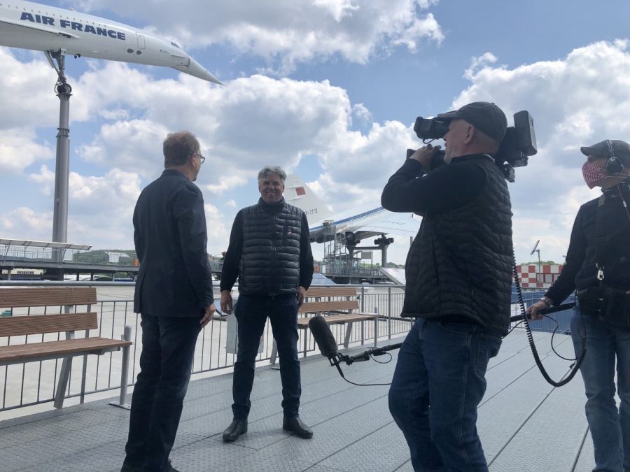 Als einzige kulturelle Einrichtung weltweit präsentiert das Technik Museum Sinsheim gleich zwei Überschallflugzeuge hintereinander. Voll begehbar und in Startposition auf dem Museumsdach aufgestellt, heißen die Tupolev Tu-144 und die Concorde F-BVFB die Besucher täglich willkommen – eine geradezu perfekte Location für Dreharbeiten. Mitte Mai war es soweit: neben dem ARTE-Filmteam kamen Jean-Louis Chatelain, der Pilot der museumseigenen Concorde, Andreas Späth, Luftfahrt-Journalist aus Hamburg, Jörg Henkel-Ernst, Concorde-Passagier, Museumspräsident Hermann Layher und Mitarbeiter in Sinsheim zusammen, um über den Mythos Concorde zu sprechen, über die Katastrophe zu diskutieren und Erfahrungen auszutauschen. So kann es Museumspräsident Hermann Layher bis heute kaum fassen, dass es dem Museumsverein nach unzähligen Anfragen gelang, den weißen Vogel für das Museum zu bekommen. Schnelligkeit gepaart mit einzigartiger Schönheit und grenzenlosem Luxus an Bord, das machte die Concorde aus. In dreieinhalb Stunden von Paris nach New York – solch einen Luxus musste man sich aber auch leisten können. „Die Concorde ist für mich eine Ikone über den Wert der Zeit. Ein Ticket kostete damals das 10fache eines Economy-Tickets. Dadurch wurde zwar kein Komfort aber die Hälfte der Zeit gewonnen“, erklärt Museumspräsident und Concorde-Fan Layher. Nach der Außerdienststellung bei Air France durften neben dem Museum in Sinsheim nur wenige Einrichtungen außerhalb Frankreichs solch einen aerodynamischen Vogel ihr Eigen nennen.