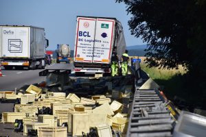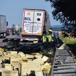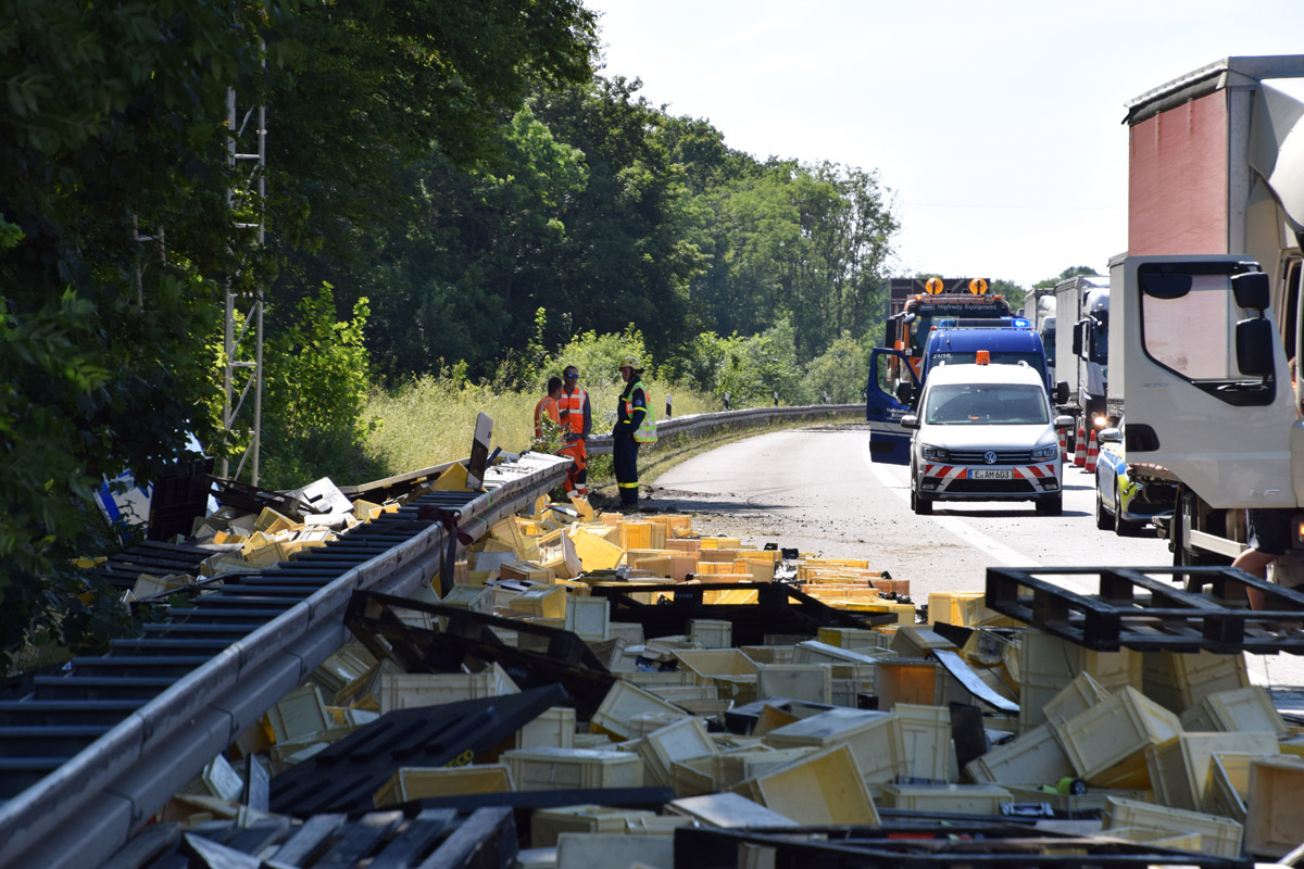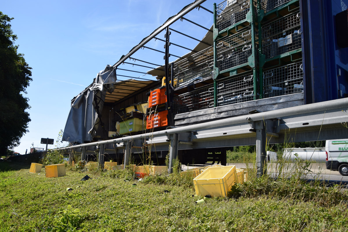 Der Slowake war mit seinem Sattelzug auf der Autobahn 6 zwischen den Anschlussstellen Sinsheim-Steinsfurt und Bad Rappenau in Richtung Heilbronn gefahren. In Höhe von Kirchardt hatte sich vor ihm ein Stau gebildet, welchen er zu spät erkannte. Um einen Zusammenstoß mit dem vor ihm abbremsenden Lastwagen zu verhindern, wich er nach rechts aus, wo er zunächst gegen die Schutzplanken und ein Baustellenschild prallte, ehe er wieder zurück auf die Standspur lenkte. Bei dem Zusammenstoß wurde der Sattelzug auf seiner gesamten Länge aufgerissen, wodurch sich die geladenen Autoteile auf der gesamten Fahrspur sowie im Wald abseits der Autobahn verteilten. Der Slowake überstand den Unfall ohne Verletzungen. Das herbeigeeilte Technische Hilfswerk aus Sinsheim wurde im Nachgang an die Einsatzstelle alarmiert, um die verlorene Ladung zu sichern. „Wir haben hier einen Gesamtalarm für den Ortsverband Sinsheim ausgelöst und müssen nun die relativ großflächig verteilte Ladung bergen“, erklärte THW-Zugführer Benjamin Allgaier vor Ort. Die Aufräumarbeiten dauerten bis gegen 20 Uhr an. Neben dem THW waren auch ein Sinsheimer Abschleppunternehmen sowie eine Streife der Autobahnpolizei Weinsberg im Einsatz. Letztere haben die Ermittlungen aufgenommen. Der Sachschaden wird auf mehrere zehntausende Euro geschätzt.