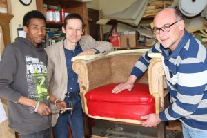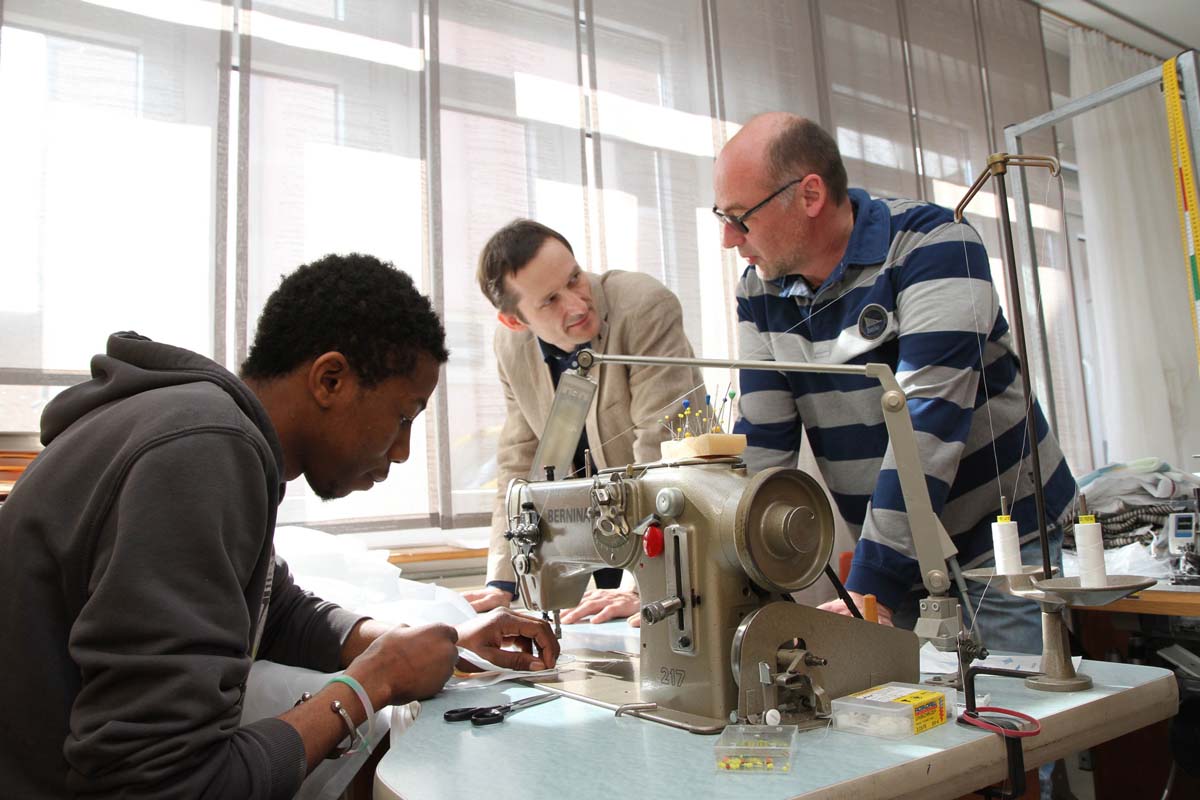 So war er heilfroh, als Johanna Thie aus Sinsheim, die für das Deutsche Rote Kreuz ehrenamtlich in der Flüchtlingshilfe tätig ist, ihm Ebrima Camara vermittelte. Der junge Schneider aus Gambia war in einer Sinsheimer Asyl-Unterkunft untergekommen. Vom 21. November bis 1. Februar absolvierte er bei Schwab ein Praktikum und begann zur Ausbildungsvorbereitung direkt im Anschluss eine Einstiegsqualifizierung. „Ebrima hängt sich wirklich rein und weiß was er will. Er ist in den letzten 20 Jahren der beste, den ich hatte“, freut sich der Handwerker. Nach seinen Aussagen haben auch Bäcker, Dachdecker, Metzger und andere Handwerker Probleme mit dem Fachkräftemangel. „Berufe, in denen man körperlich arbeiten muss und sich auch mal schmutzig macht, will keiner mehr machen.“