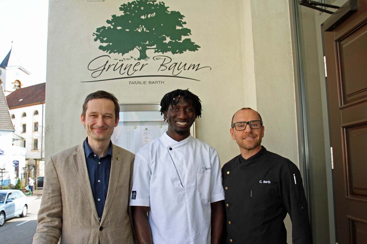 Jamil Fafa Ceesay stammt ebenfalls aus Gambia und will Koch werden. Er arbeitet im renommierten Restaurant „Grüner Baum“ in Sinsheim-Rohrbach in der Küche. Anders als Camara, der trotz intensivster Bemühungen bis heute keinen Sprachkurs besuchen konnte, hat er das Glück, dass er seit Herbst an der Einstiegsqualifizierung Plus mit zusätzlicher Unterstützung, Maxx-Ticket und Sprachkurs teilnehmen kann. Katzenstein weiß: „Die Kurse sind hoffnungslos überbucht.“ Der Bedarf der hiesigen Unternehmen sei offenbar nicht richtig eingeschätzt worden.