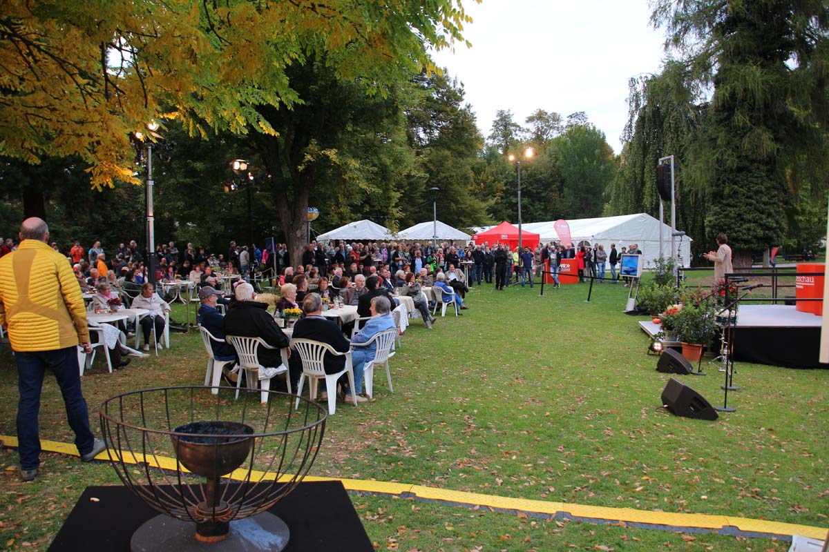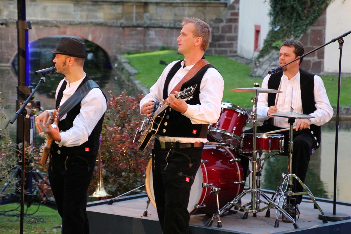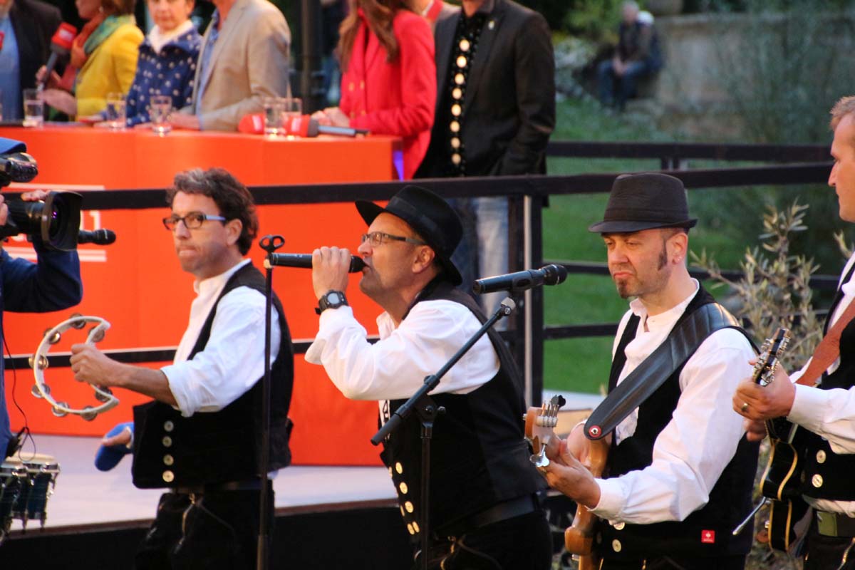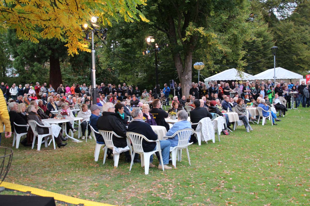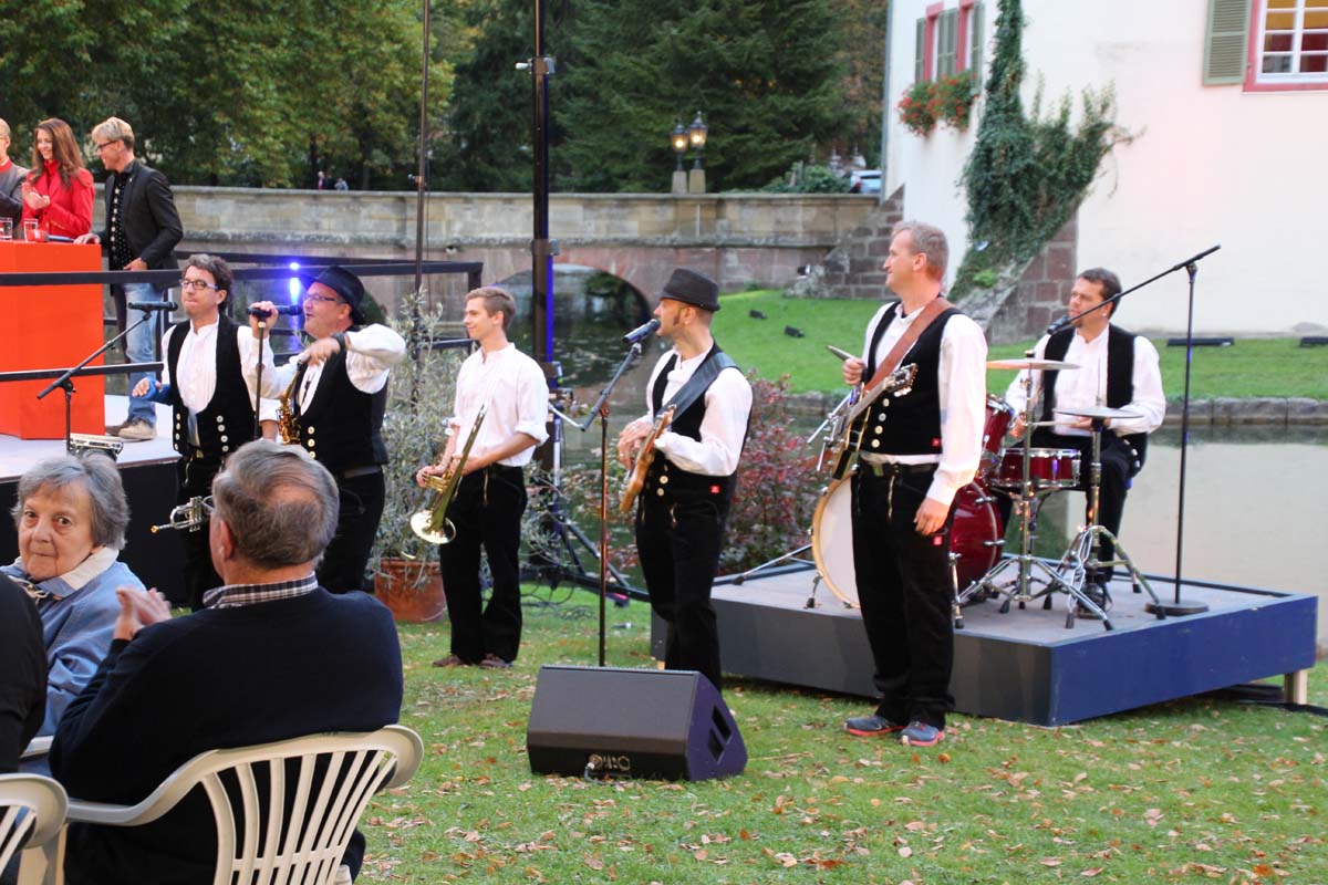 (cr) Spätestens jetzt kennt jeder im Ländle Angelbachtal. An 4 Tagen gab es je eine Reportage über den so beliebten Ort im Kraichgau mit der „Landesschau Baden-Württemberg: Landesschau Mobil Angelbachtal“. Hier wurden alle Facetten des Lebens in Angelbachtal gezeigt. Für den 5. Tag war dann die Landesschau live vor Ort mit prominenten Gästen. Zur Einstimmung heizte der schwäbische Kabarettist Christoph Sonntag dem Publikum ein und pünktlich um 18.15 Uhr hiess es dann drei, zwei , eins – hie ist die Landesschau Baden Württemberg aus Angelbachtal. Bei bestem Vorzeigewetter war der Schlosspark gut gefüllt und alles klappte wie am Schnürchen. Fast alles, denn die Zuspielungen aus Stuttgart war auf den Monitoren leider nicht zu sehen. Trotz alledem war dies das Highlight in Angelbachtal. Beim Thema Heimat und Mundart glänzten dann die eingeladenen Gäste wie der Alemanne Hansy Vogt und der schwäbische Kabarettist Christoph Sonntag sowie Eberhard Reuss und Doris Steinbeiser. Musikalisch rockten „Luddi“ eine alemannische Mundart-Band.
