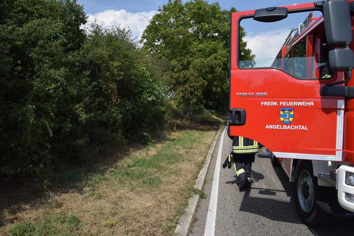 Angelbachtal/Östringen. (red) Entfachte eine weggeworfene Zigarette einen Böschungsbrand an der Bundesstraße 292 oder wurde sowohl die Böschung als auch ein Feld wenige hundert Meter entfernt mutwillig in Brand gesteckt? Die Polizei war in beiden Fällen vor Ort und ermittelt nun. Kurz vor 15.30 Uhr ging bei der Rettungsleitstelle der Notruf über den Brand einer Böschung an der B 292 zwischen Angelbachtal und Östringen ein. Während die Wehrleute noch auf dem Weg in das Gerätehaus waren, erreichte ein zweiter Anruf die Leitstelle, der Brand hätte sich schnell ausgeweitet – und auch eine Fläche mehrere hundert Meter weiter würde brennen. Feuerwehrleute aus Östringen, Angelbachtal und Waldangelloch wurden in großer Zahl nachalarmiert. Beim Eintreffen an Angelbachtaler Einsatzstelle hatte die Böschung auf 20 x 15 Meter in Flammen gestanden. „Schnell war das Feuer aus und wir konnten die Kollegen bei ihrem Einsatz unterstützen“, erklärte Feuerwehr-Einsatzleiter Frank Hanreich. Doch auch die Östringer Kameraden hatten ihren Flächenbrand schnell unter Kontrolle und konnten wieder einrücken. Gerade bei den aktuellen Temperaturen warnt die Feuerwehr immer wieder davor, Zigaretten oder Glas in die Natur zu werfen – dies hat bereits in der Vergangenheit zu größeren Flächenbränden geführt.