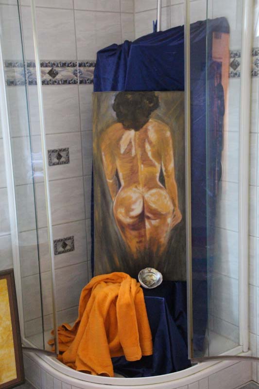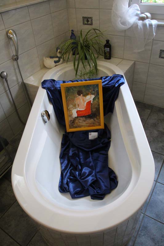 Was auf gar keinen Fall fehlen durfte ist die Kunstausstellung bei Karin Wittmann ein Muss für die Angellocher Kerwe. Das wird hoffentlich auch für die nächsten Jahre so sein. Sie präsentierte wieder ihre Kunstwerke im ganzen Haus und auch die Aktgemälde in Dusche und Wanne im Badezimmer wurden bestens präsentiert und waren ein echter Hingucker. Gäste dere Ausstellung wurden mit einem Gläschen Sekt und Brezeln verwöhnt.