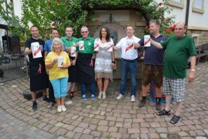 Hier noch ein Bild vom FREIBIERTRINKEN am Samstagabend, mit den Vertretern der örtlichen Vereine sowie Bürgermeisterin Tanja Grether und Jürgen Hüngerle von der Heidelberger 1603-Brauerei.