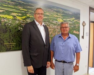 Bürgermeister Otto Eckert spricht mit Dr. Albrecht Schütte MdL über Projekte, die in Reichartshausen auf der Agenda stehen