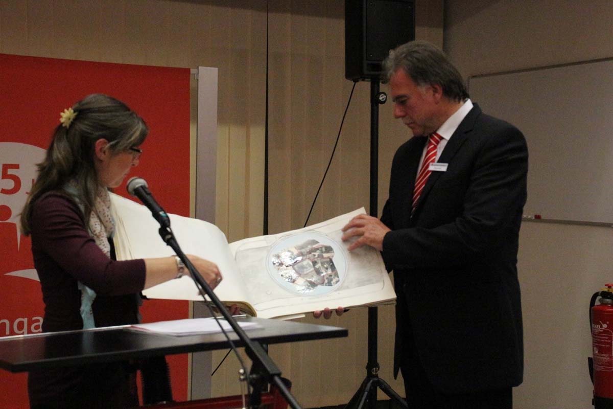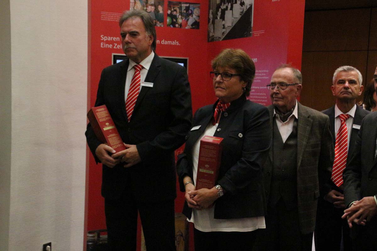 Und mit dieser frohen Botschaft eröffnete Thomas Geiß, Mitglied des Vorstandes der Sparkasse Kraichgau, am 8. Oktober 2015 die Ausstellung im Beisein von Jörg Albrecht, dem Oberbürgermeister der Stadt Sinsheim, und zahlreichen interessierten Gästen. Geiß wies in seinen Grußworten darauf hin, dass das Sparen auch nach 175 Jahren keineswegs aus der Mode gekommen sei. Auch und gerade in Zeiten der Niedrigzinsphase sei die Notwendigkeit zur Daseinsvorsorge größer denn je. Hier läge auch die Ursprungsidee der Sparkassen. „Jeder soll die Chance haben, sich etwas aufzubauen. Für diesen Zweck sollten die Sparkassen zu allen Zeiten das Sparen so einfach wie möglich machen“, so der Sparkassenvorstand.