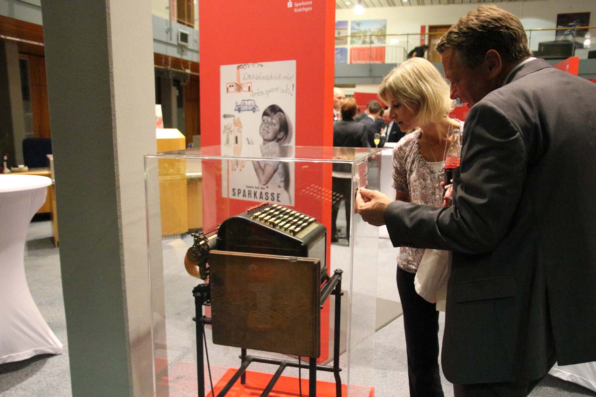 So wirft die Ausstellung auch nicht nur einen Blick in die Vergangenheit. Vielmehr will sie Kontinuitäten durch die Geschichte aufzeigen. „Wer die eigene Geschichte kennt, kann in der Gegenwart die richtigen Schlüsse für die Zukunft ziehen. Durch Zeitzeugeninterviews, umfangreiches Film- und Bildmaterial und originelle Exponate wie alte Rechenmaschinen, historische Sparbücher und Spardosen machen wir 175 Jahre erlebbar und Geschichte lebendig“, erläutert Historikerin Dr. Esther Graft den Aufbau der Ausstellung. Neben den Themen Gründung und Sparen, Krisen und Kriege, Wiederaufbau und Wirtschaftswunder sowie technologischer Wandel richtet sich der Blick auch auf die Sparkasse im Jahr 2015 und ihre vielfältigen Verbindungen in die Region.