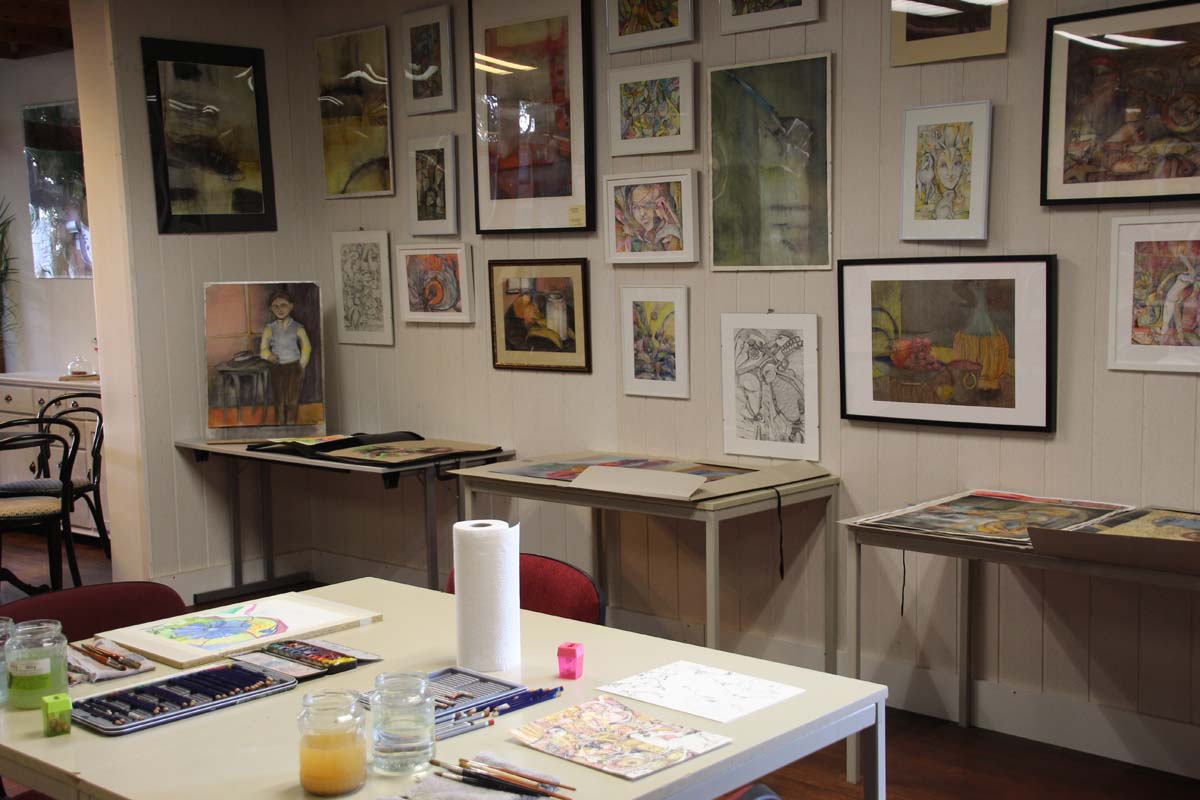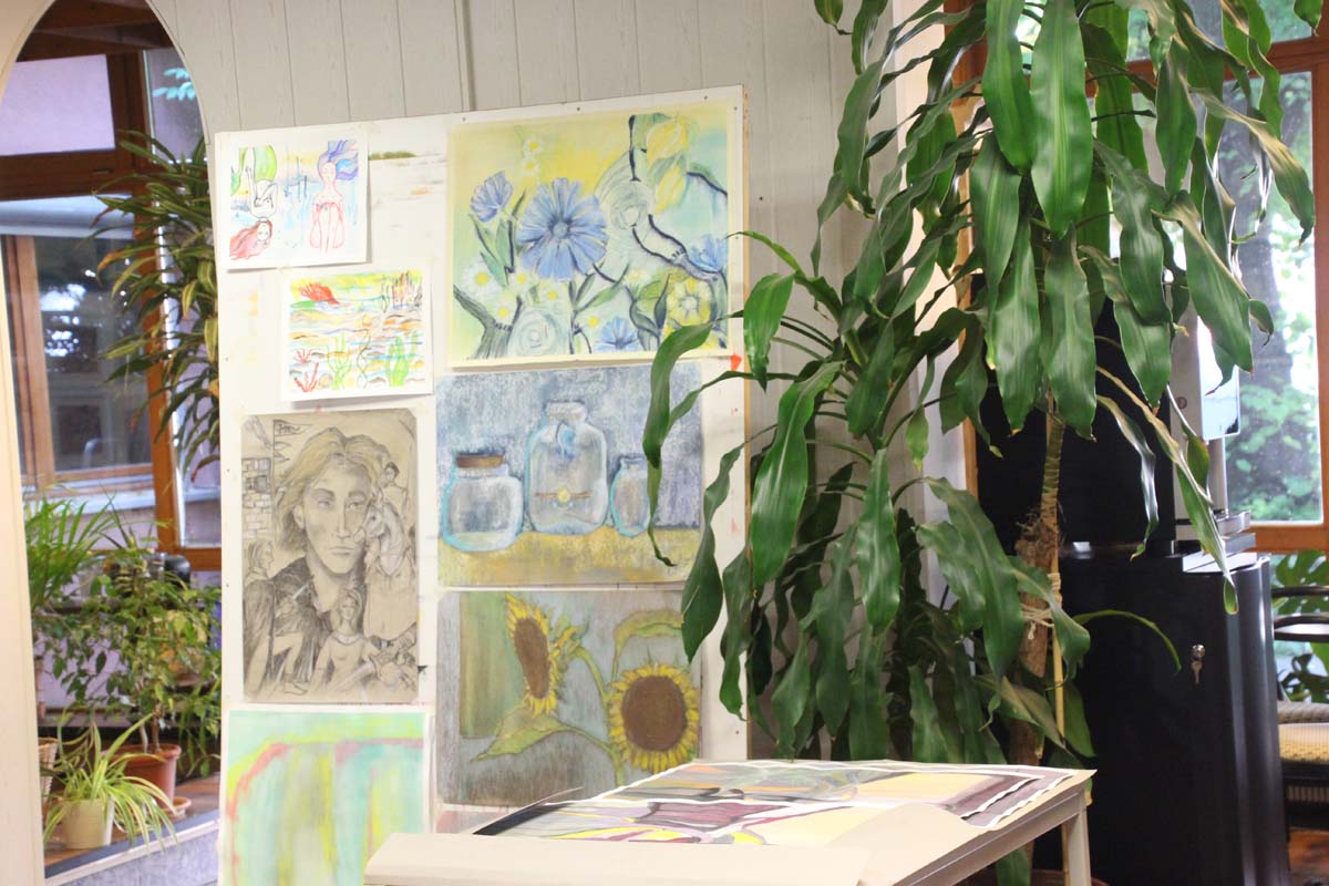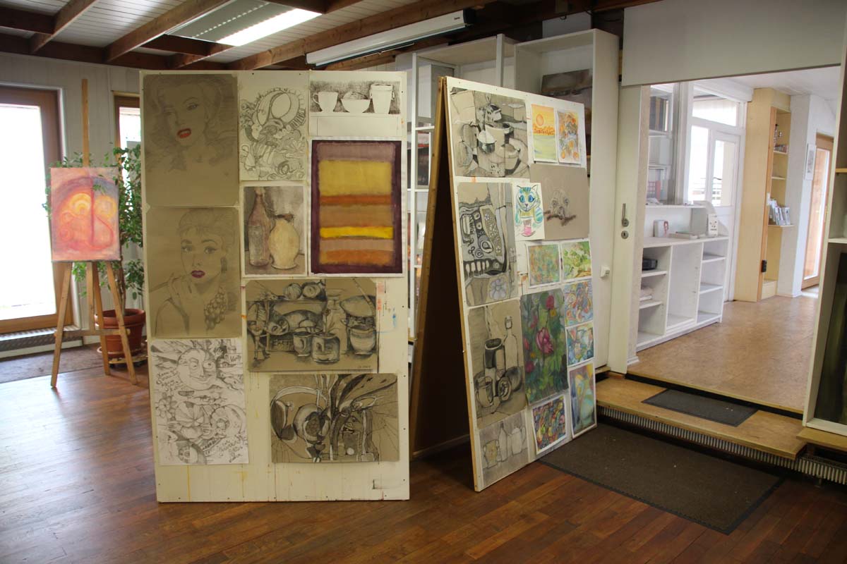 Das Besondere? – Seit ca. drei Jahren bietet sie Workshops zu den Themen Pastellkreide, Aquarelldoodle, Gouache und Zeichnen und durch diese Ausstellung auch einen Einblick in Arbeiten der vielen Teilnehmer an. Wenn der Besucher den Blick über die Kunstwerke schweifen lässt, ist eines deutlich erkennbar: Die Handschrift der einzelnen Künstler. Ob bunt, zweifarbig oder Ton in Ton. Ob abstrakt, realistisch oder fantasievoll. – Hier ist für jeden Geschmack etwas dabei!