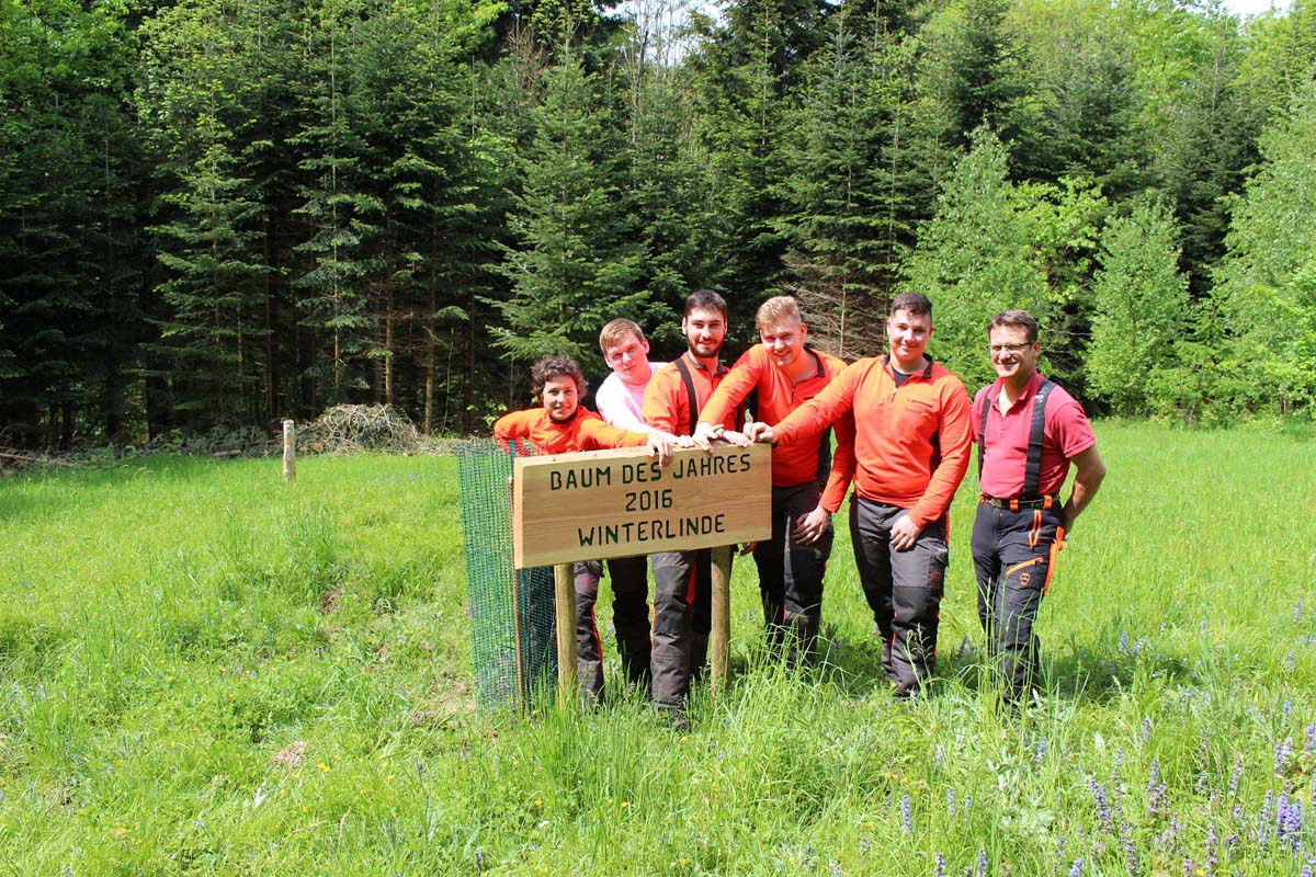 (zg) Eine herzförmige Blattform, eine fast kahle Blattunterseite und rötliche Achselbärte – das sind die Erkennungsmerkmale der Winterlinde, die der aktuelle Baum des Jahres ist. Nachdem der Fachbeirat der gleichnamigen Stiftung von Dr. Silvius Wodarz das Holzgewächs zum neuen Baum des Jahres erklärt hat, haben Auszubildende des Kreisforstamtes nun zur Schaufel gegriffen: Einer Tradition zufolge pflanzt das Kreisforstamt jeweils den Baum des Jahres oder macht – falls die Art im Bestand ohnehin vorhanden ist – mit einem Schild auf den Baum aufmerksam. Die Azubis haben unter Anleitung von Forstwirtschaftsmeister Martin Bruder den Baum gepflanzt, das dazugehörige Schild selbst angefertigt und einen Schutz gegen Wildverbiss angebracht.