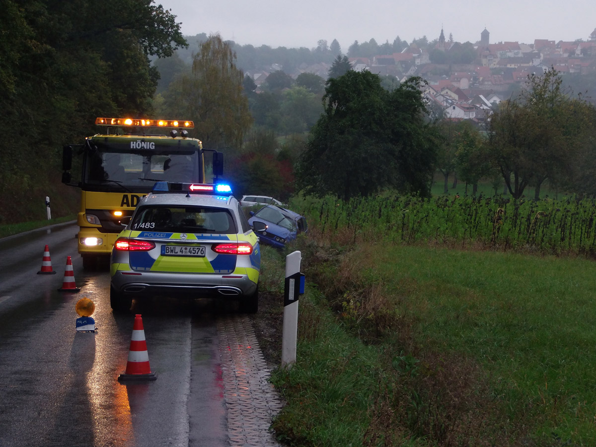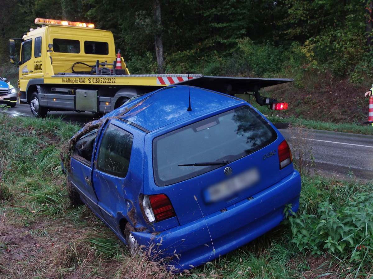 Sinsheim-Hilsbach. (pol) Eine 21-jährige Fahrerin eines VW Polo fuhr am Sonntagnachmittag, gegen 14.45 Uhr, von der L551 kommend auf der K4282 in Richtung Hilsbach. Kurz vor dem Ortseingang Hilsbach kam sie in einer S-Kurve auf der nassen Fahrbahn nach links von der Straße ab. Beim Versuch gegenzulenken verlor sie die Kontrolle über das Fahrzeug und schleuderte nach rechts in die Böschung, wo sich der Pkw überschlug. Die Fahrerin zog sich schwere Verletzungen zu und wurde zur Behandlung stationär in einem Krankenhaus aufgenommen. Der Pkw musste abgeschleppt werden, es entstand ein Sachschaden von rund 2500 Euro. Die K4282 war bis 15.25 Uhr voll gesperrt, danach wurde der Verkehr einspurig an der Unfallstelle vorbeigeleitet.