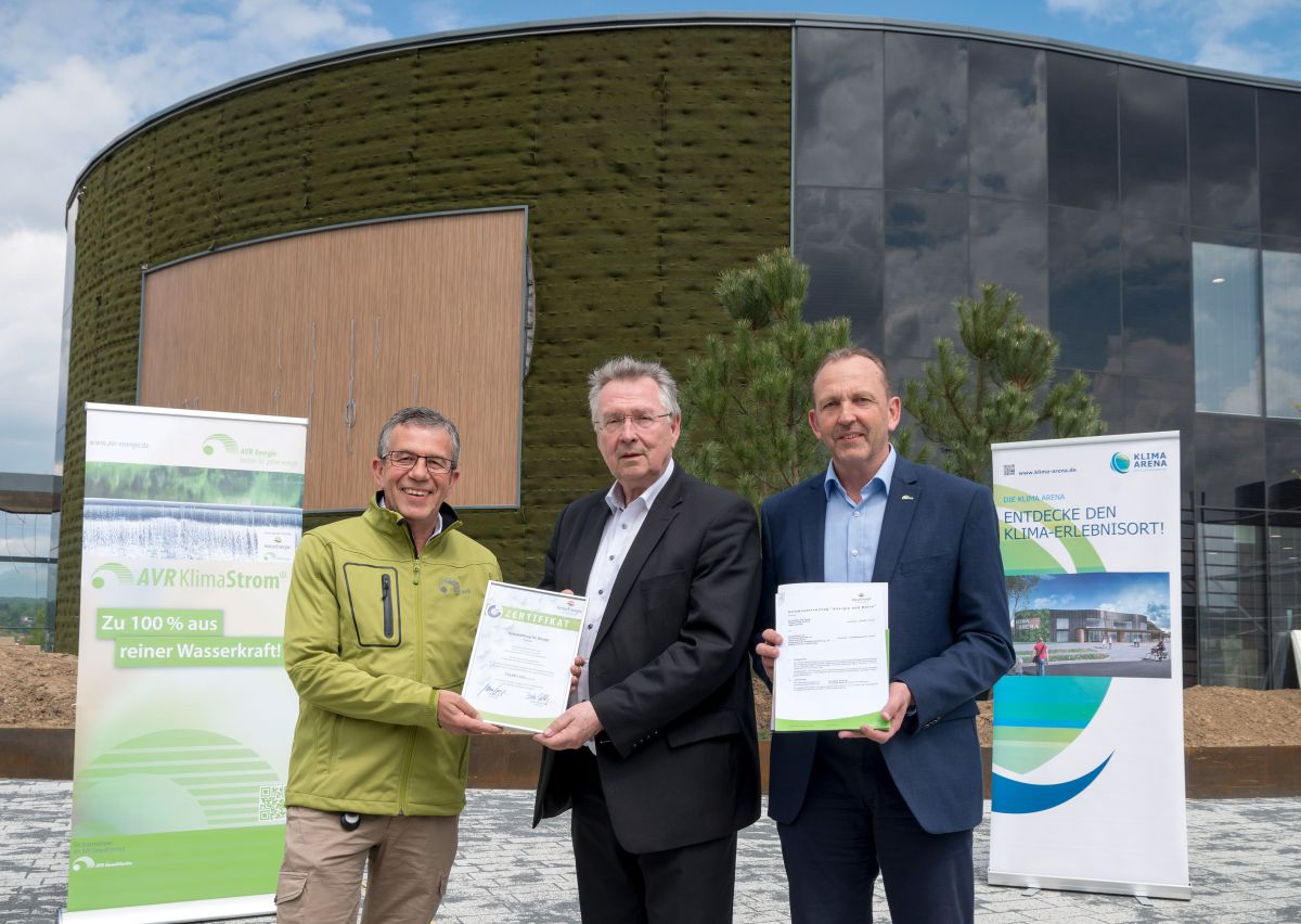 Dass die „Klimastiftung für Bürger“ als Trägerin der Klima Arena beispielhaft auf Nachhaltigkeit setzt, versteht sich von selbst. „Deshalb werden wir für die elektrische Versorgung der Klima Arena neben der eigenen Stromerzeugung über drei PV-Anlagen nur echten Naturstrom beziehen, der in hochmodernen Wasserkraftwerken am Hochrhein zwischen Schaffhausen und Basel hergestellt wird“, betont der Vorstandsvorsitzende der Klimastiftung, Alfred Ehrhard. Dass die AVR Energie als zukünftiger Naturstrom-Partner gleichzeitig der direkte örtliche Nachbar der Klima Arena ist, verleiht der Kooperation zusätzlich eine besondere Note.