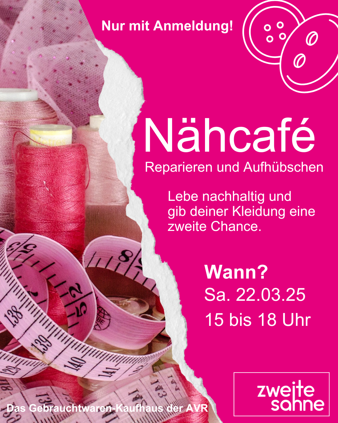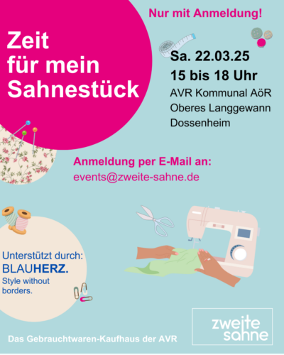 Nachhaltigkeit und Kreativität verbinden sich in einer neuen Veranstaltungsreihe in der „zweiten sahne“, dem Gebrauchtwaren-Kaufhaus der AVR. Am Samstag, den 22. März 2025, lädt die „zweite sahne“ gemeinsam mit dem Inklusionsunternehmen BLAUHERZ zum ersten Nähcafé ein.