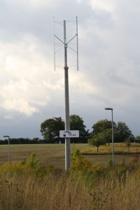 Elektromobilen, die zum Fuhrpark des Unternehmens gehören, steht seit letzter Woche ein Vertikalwindrad vor dem neuen Geschäftsgebäude in der Dietmar-Hopp-Straße.