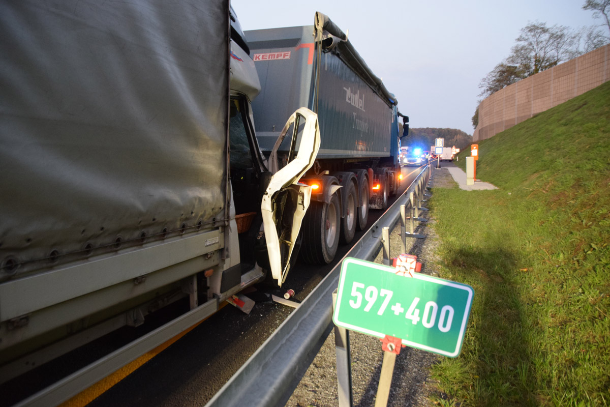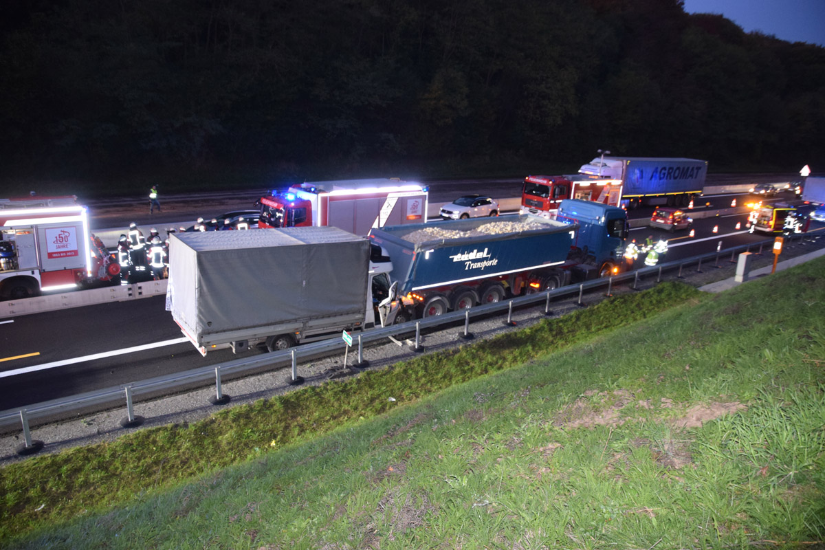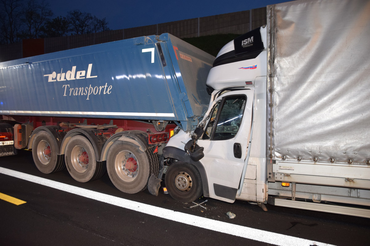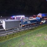 Nach derzeitigem Kenntnisstand fuhr ein Kleintransporter auf einen verkehrsbedingt bremsenden Sattelzug auf, der Fahrer des Kleintransporters wurde mit schweren Verletzungen in ein nahegelegenes Krankenhaus verbracht.