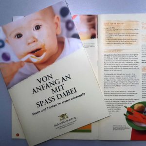 Alle Teilnehmer erhalten im Anschluss die aktuelle Broschüre „Von Anfang an mit Spaß dabei“ des Ministeriums Ländlicher Raum und Verbraucherschutz Baden-Württemberg, die viele praktische Tipps und Rezepte rund um die Ernährung im ersten Lebensjahr bietet. Die Veranstaltung an sich ist kostenfrei, Lebensmittelkosten werden umgelegt.