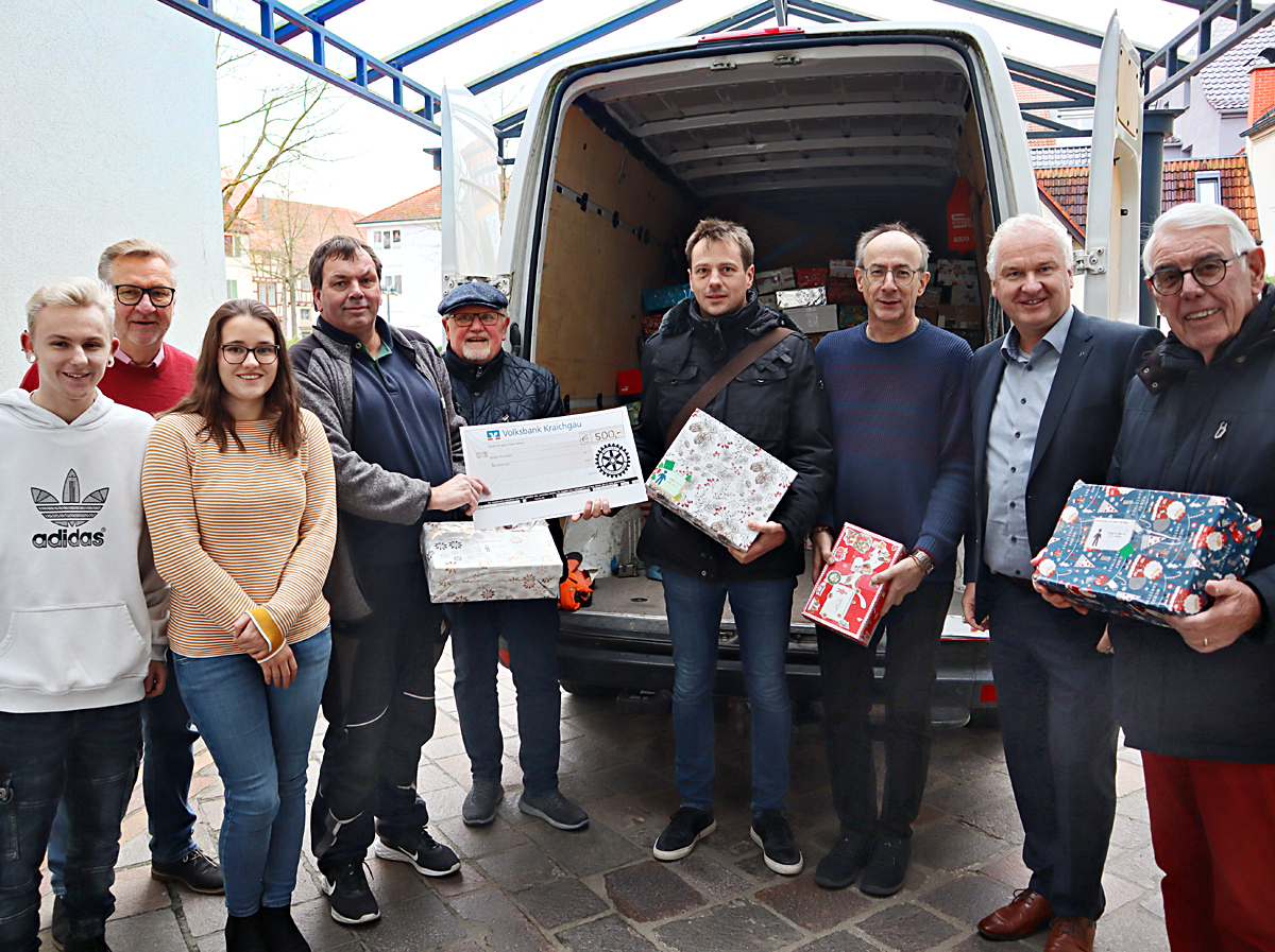 Auch der Rotary Club Sinsheim hat sich mit einer Spende an der Aktion beteiligt. Der symbolische Spendenscheck über 500 Euro wurde dieser Tage übergeben. Von dem Geld wurden weitere Waren gekauft, um Geschenkpäckchen zu ergänzen.