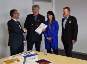 Große Freude bei OB Albrecht, Museumschef Layher, Vanessa Layher und Museumsleiter Michael Walter (v. l.) über die Baugenehmigung der Halle 3.