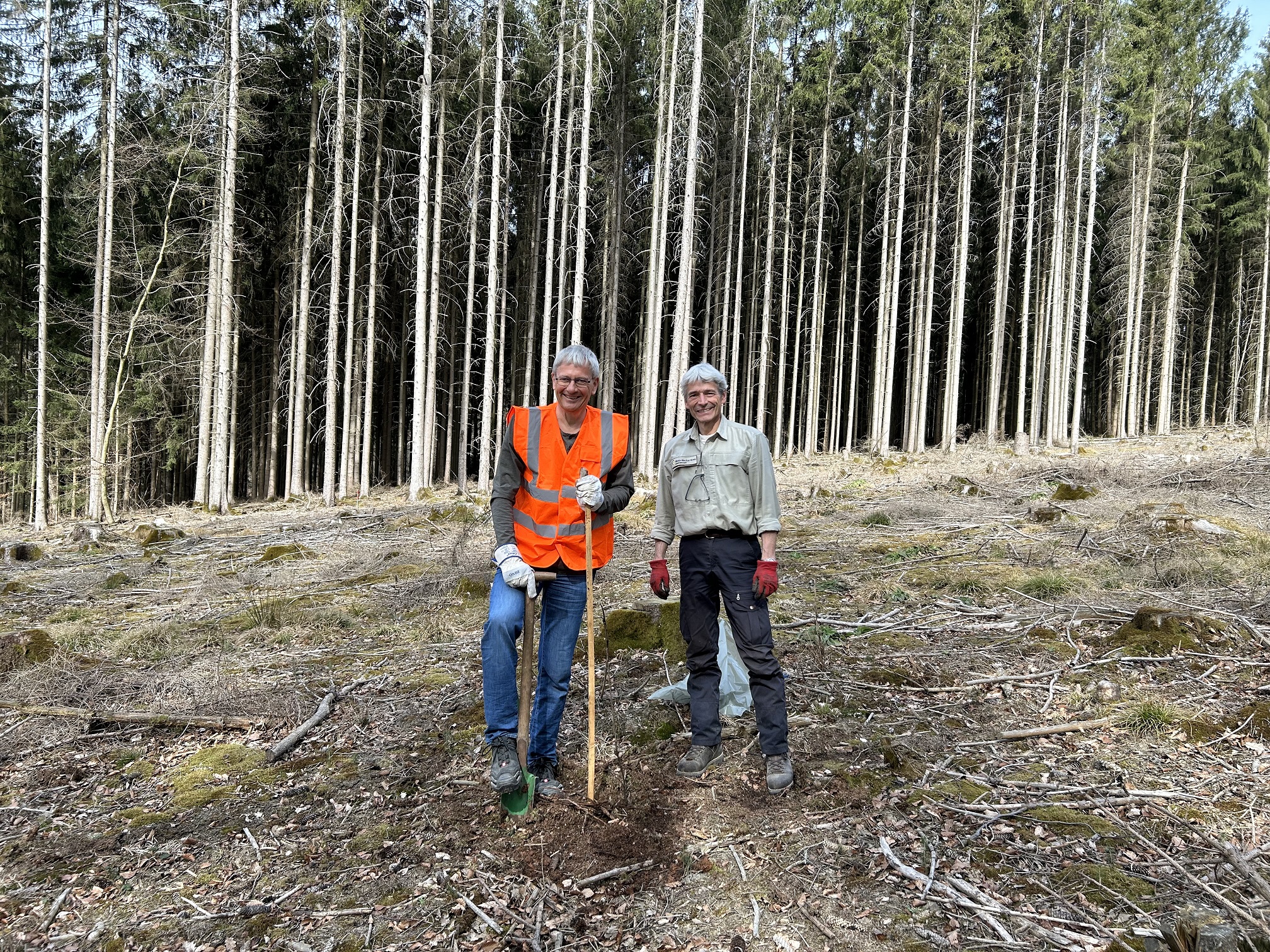 Anlässlich des Internationalen Tags des Waldes am 21. März pflanzten Stefan Hildebrandt, Stellvertreter des Landrats und Erster Landesbeamter, sowie das Team des Kreisforstamtes des Rhein-Neckar-Kreises 25 Rot-Eichen im Gebiet „Saubusch“ zwischen Schönbrunn und Neckargemünd. Die Pflanzung erfolgte auf einer von Borkenkäfern befallenen Fläche, die als Chance für die Waldverjüngung genutzt wird. Manfred Robens, Leiter des Kreisforstamtes, betonte, dass Kahlflächen eine stärkere Mischung von Baumarten ermöglichen und die gezielte Auswahl klimastabiler Baumarten unterstützen.